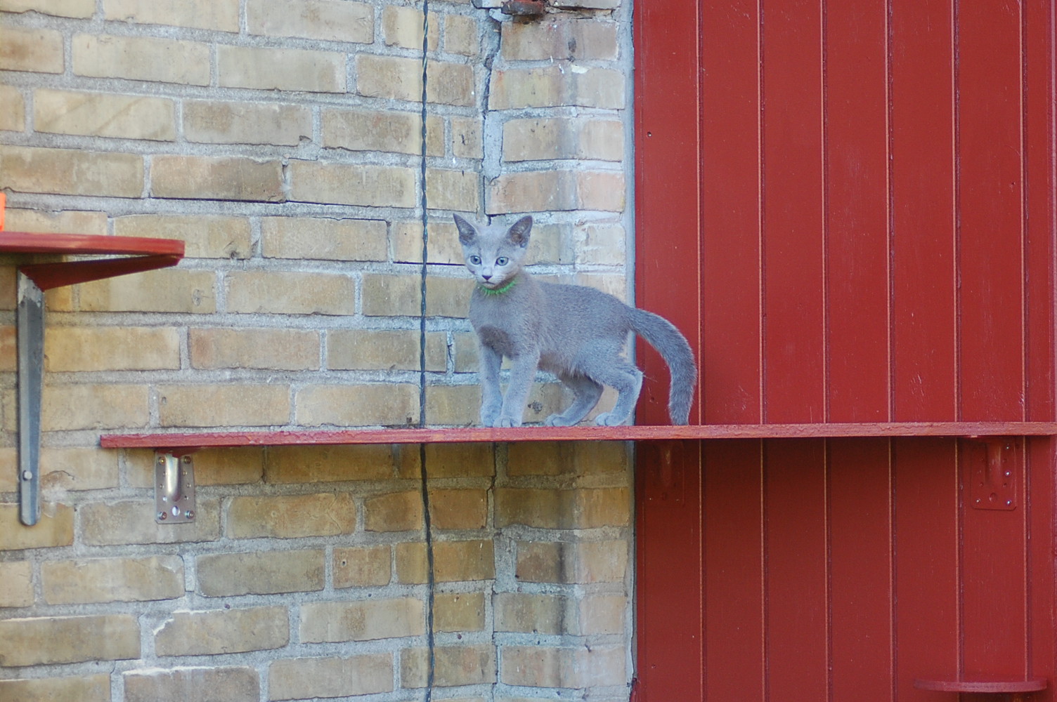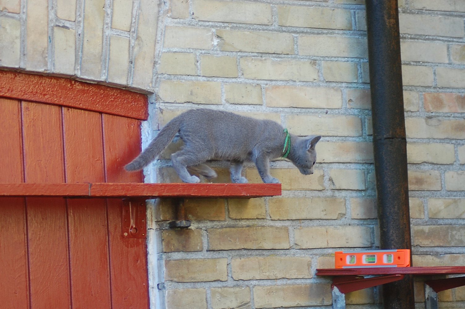 hedder han på stamtavlen og måske kommer han til fremover at hedder Cæsar. Uanset navnet så er der nogen ting han får med sig hjemmefra og en af dem er nysgerrighed! Han kunne jo ikke vente til jeg var helt færdig og hvis han har røde pletter når hans ejer kommer og henter ham, så er det ikke ” Røde Hunde ” eller en anden mystisk sygdom, næ det er såmænd bare fordi lille Hr nysgerrig, ikke kunne vente til jeg var færdig og malingen var rigtig tør !