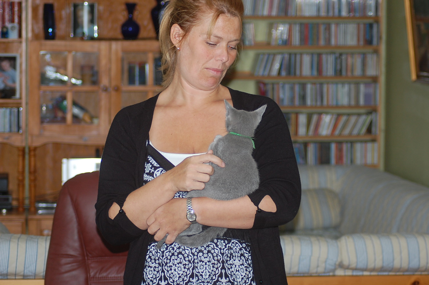 Det gør altid ondt at aflevere en killing som man har passet siden den blev født, men Malene lovede mig, at jeg ville få lov til at høre lidt fra ham fremover og også at jeg ville få billeder af ham. Jeg er slet ikke i tvivl om at han vil få det rigtig dejligt hos hende og hendes datter og man kan jo desværre ikke beholde dem allesammen.
