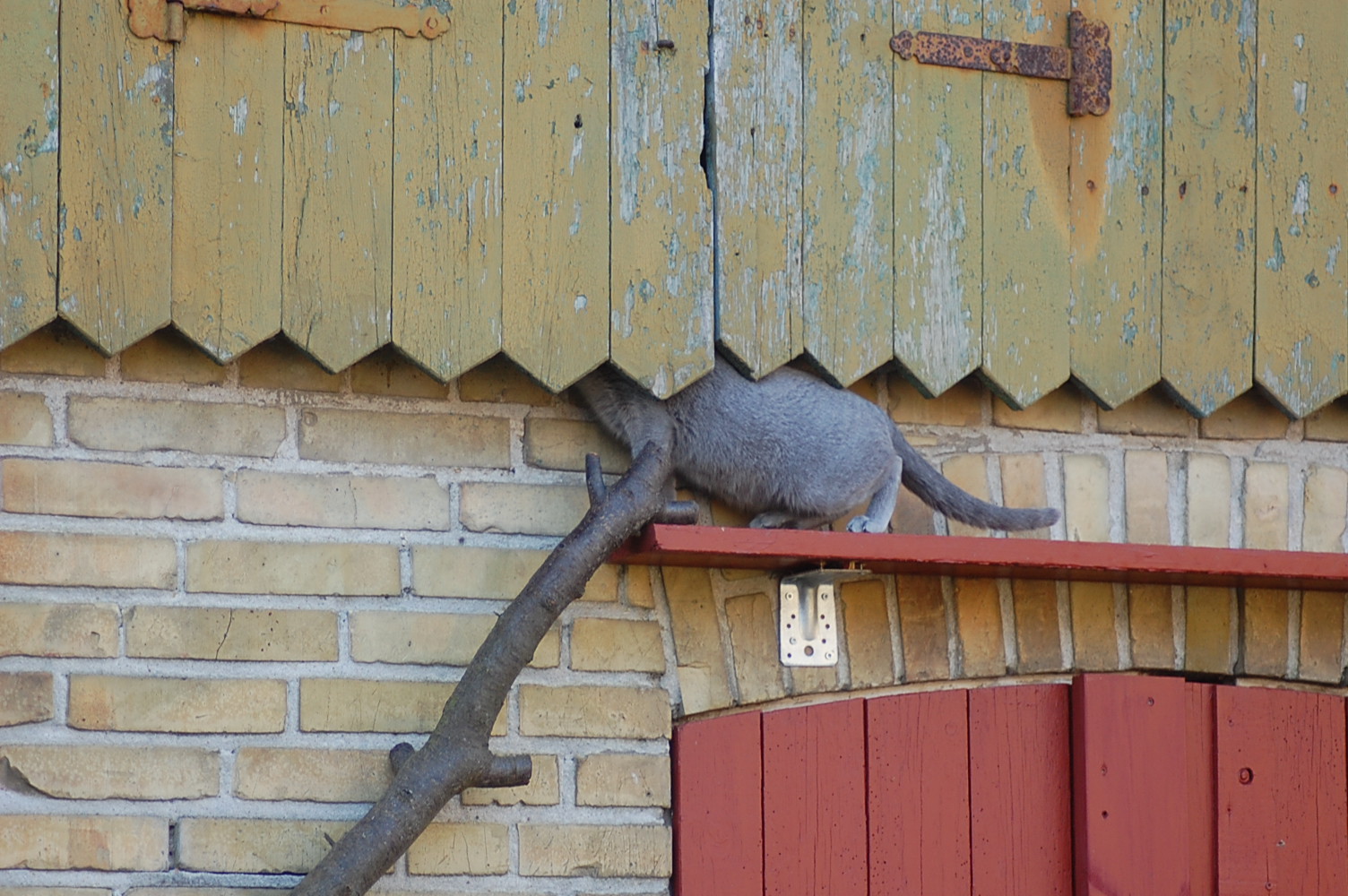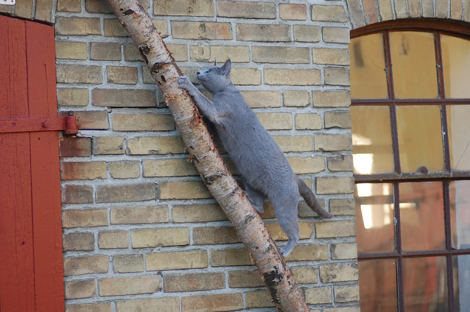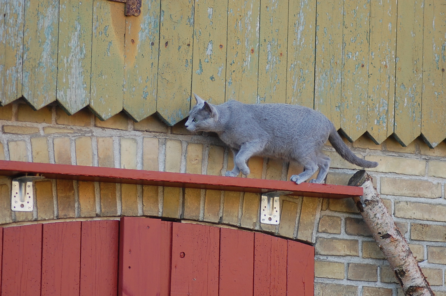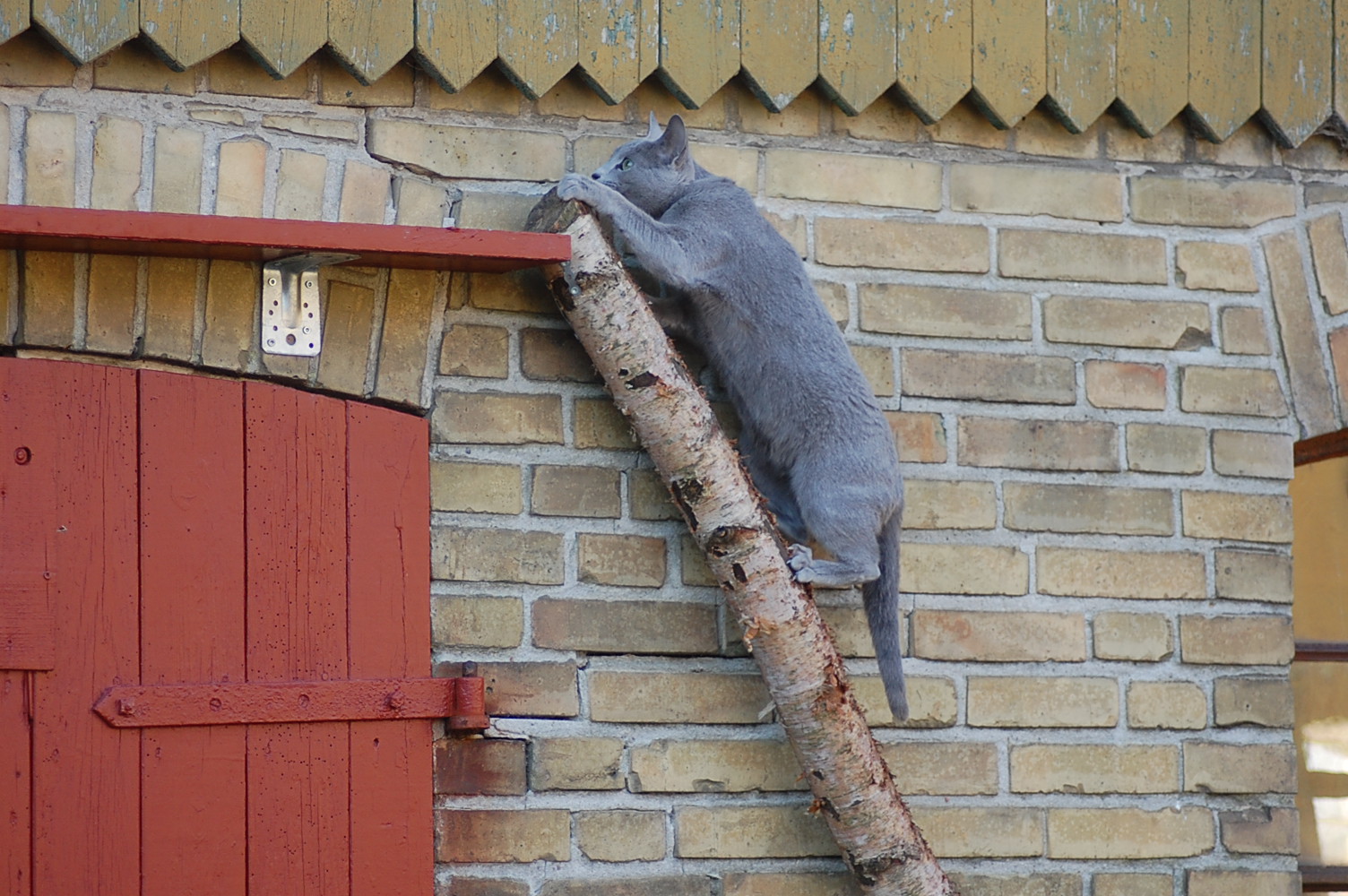 var ude på gårdspladsen fra morgenstunden og det kom der nogle ret gode billeder ud af. Kattene har fået lov til at gå sammen et stykke tid og det skulle der jo ikke ske noget ved, når hunkatten ikke var i løbetid, troede jeg. Jeg kunne nu godt få en mistanke om noget andet, når jeg ser på disse billeder. Ruby havde det mægtigt skægt med at løbe efter kattene og Oliver vær i nærkontakt med Kosmos, men de bedste billeder var nok dem af Juliana der hørte en due oppe på taget og bestemte sig for at gå på jagt efter den. Hun afslørede at der var en mulighed for en målbevidst og slank russer for at gemme sig totalt, men hun kunne ikke komme ind på loftet, og duen på taget kom hun slet ikke i nærheden af.