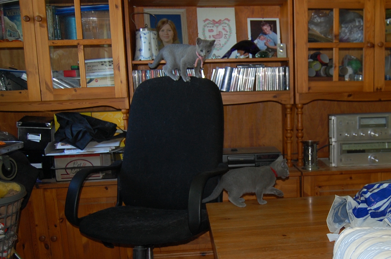 er jo et ord der får en helt ny betydning når man har 4 livlige russerkillinger over hele stuen og op og ned af møblerne. Jeg har tit undret mig over at de ikke ødelægger noget så travlt de har, men det er meget sjældent at der bliver væltet noget ned. Mine killinger er jo nu 11 uger gamle og de er ved at være klar til nye udfordringer hos nye familier, så hvis der er nogen der har lyst til at tabe deres hjerte helt og aldeles, til sådan en lækker russer, så er det bare at henvende sig, for jeg har stadig en enkelt killing til salg.