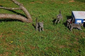 Det er jo så dejligt vejr og solen skinner, så i dag kom kameraet med ud. Jeg bruger jo alt for meget tid på at kæle med og kigge på de dejlige små, så jeg ofte glemmer at tage billeder af dem. billeder har jeg så taget en masse af i dag og de kommer her. Der er stadig killinger til salg, nemlig dem med det røde og med det orange bånd.