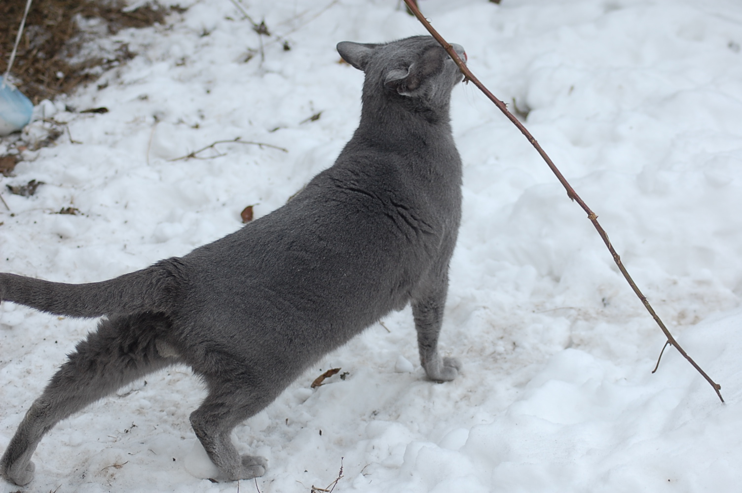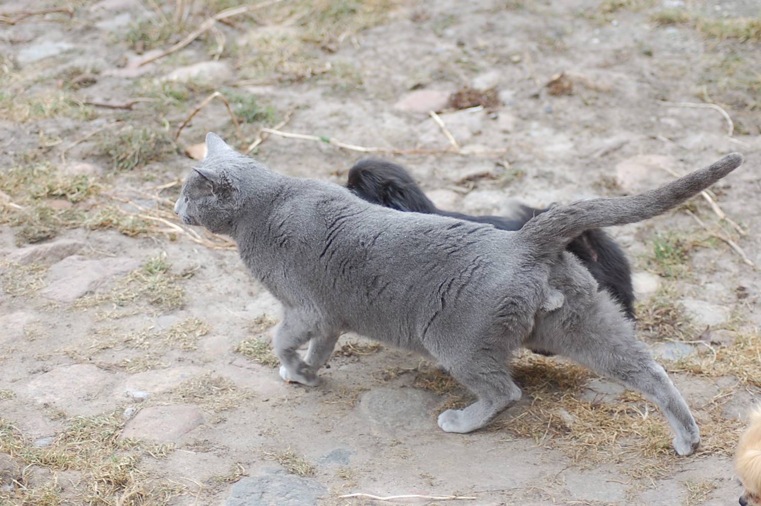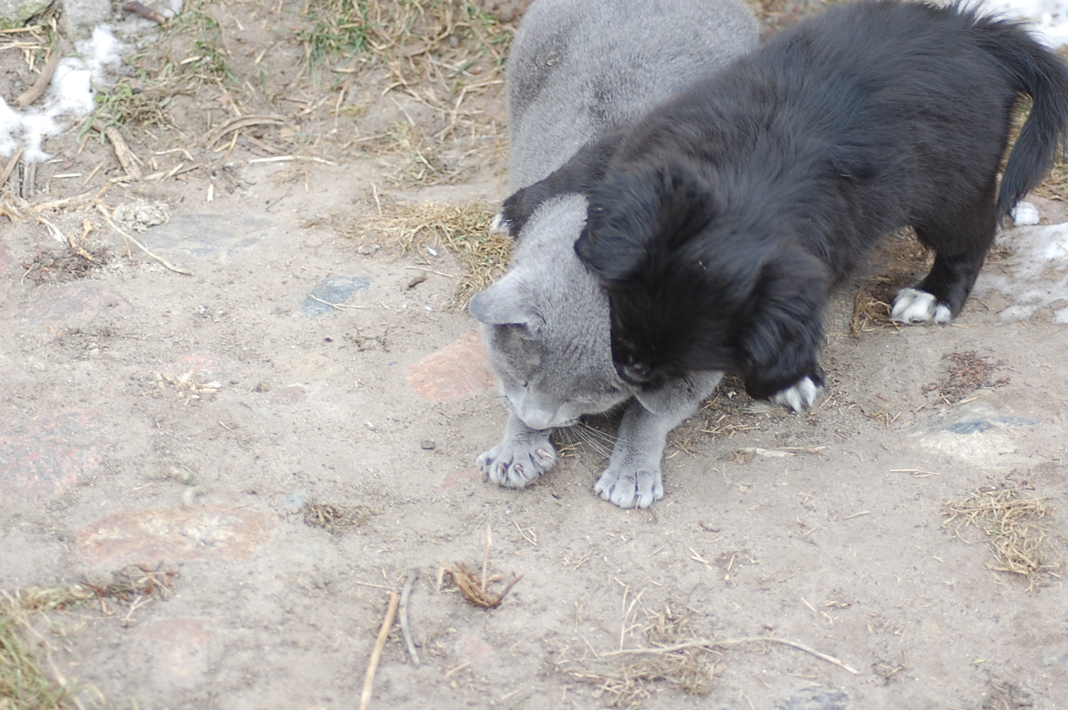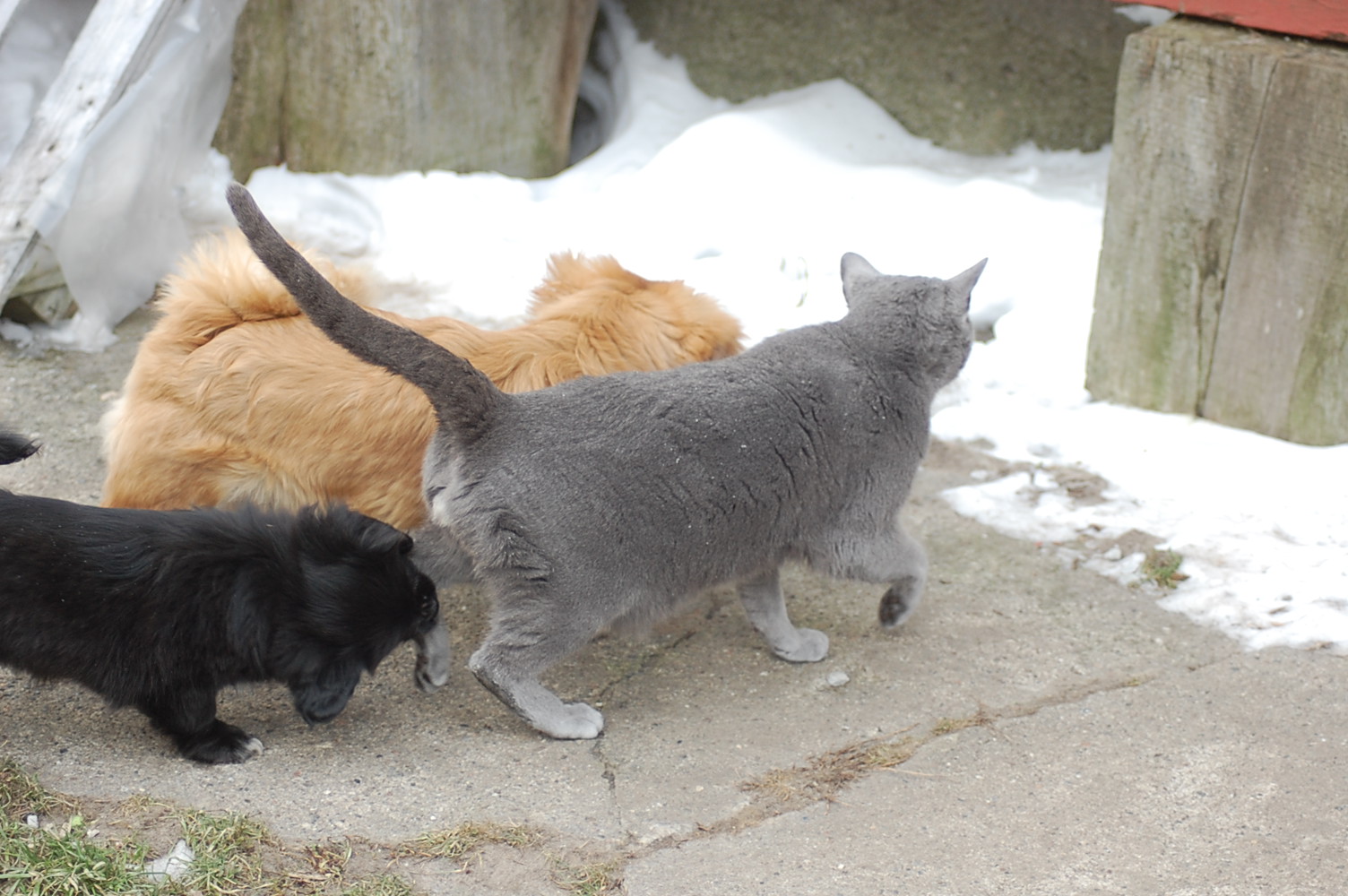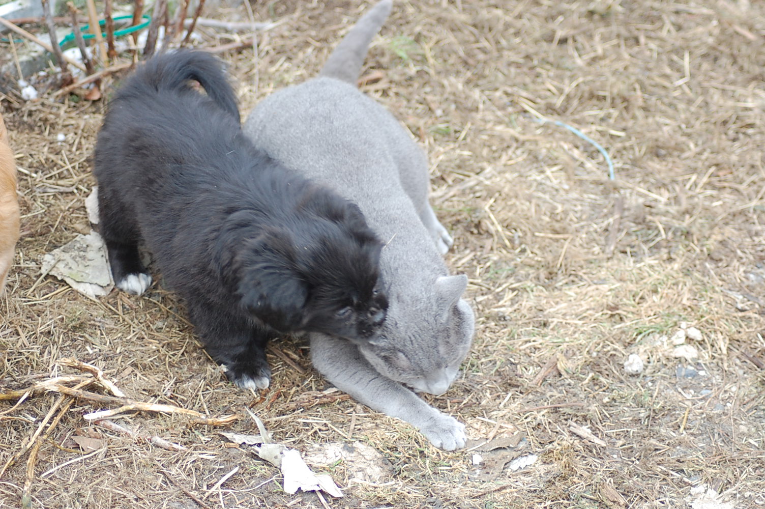 kommer fint ud af det med hinanden, men sommetider synes jeg at Kosmos burde finde sig i lidt mindre fra hundenes side. Når mine hunde møder en fremmed kat og de vil behandle den som et tøjdyr, så sker det at de får sig en grim overraskelse. I øjeblikket er det især Mio der tager sig rigtig mange friheder og bider kattene både i ører, hale og ben.