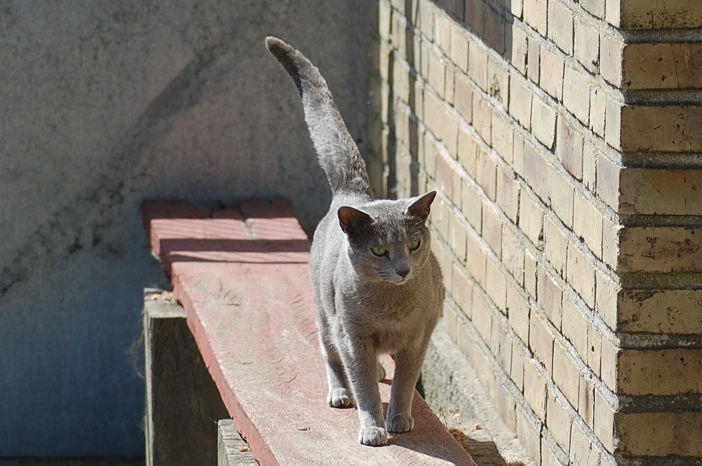 har jeg taget nye billeder af i dag, og på nogen af dem kan man virkelig se min dejlige kat svare mig, når jeg snakker til ham. Det er svært at få gode billeder når der er alt for mange dyr samlet , så i dag fik Kosmos lov til at have gårdspladsen for sig selv.