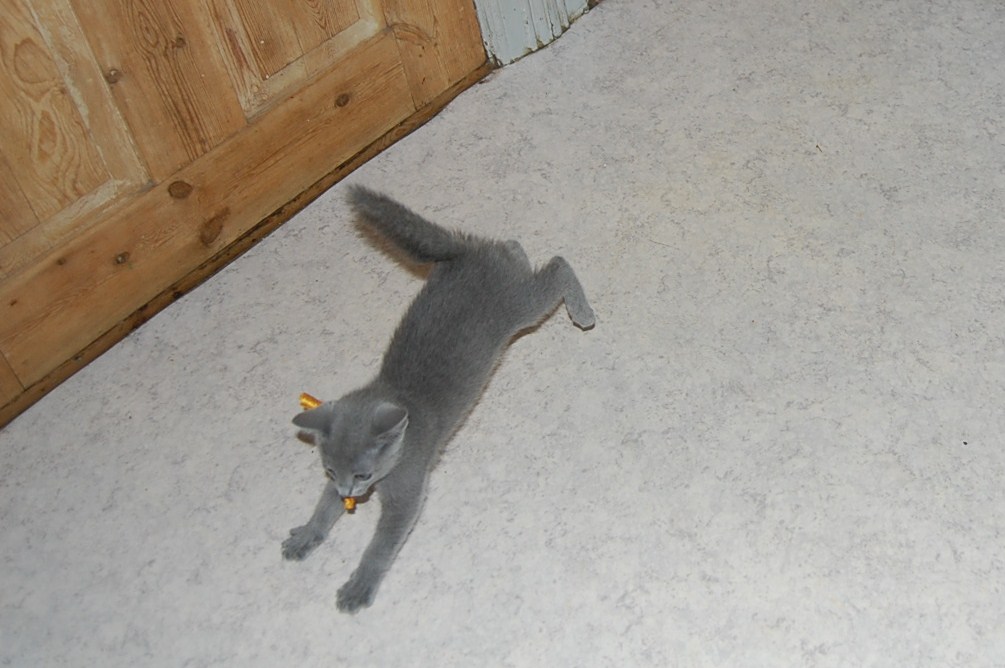 Easy To Love med blå snor, er bestemt meget nem at elske. Hun er en rolig, blid og lidt forsigtig killing, der holder sig lidt i baggrunden mens hun stille og roligt ser sig omkring.
