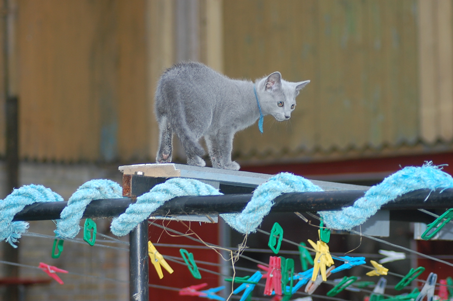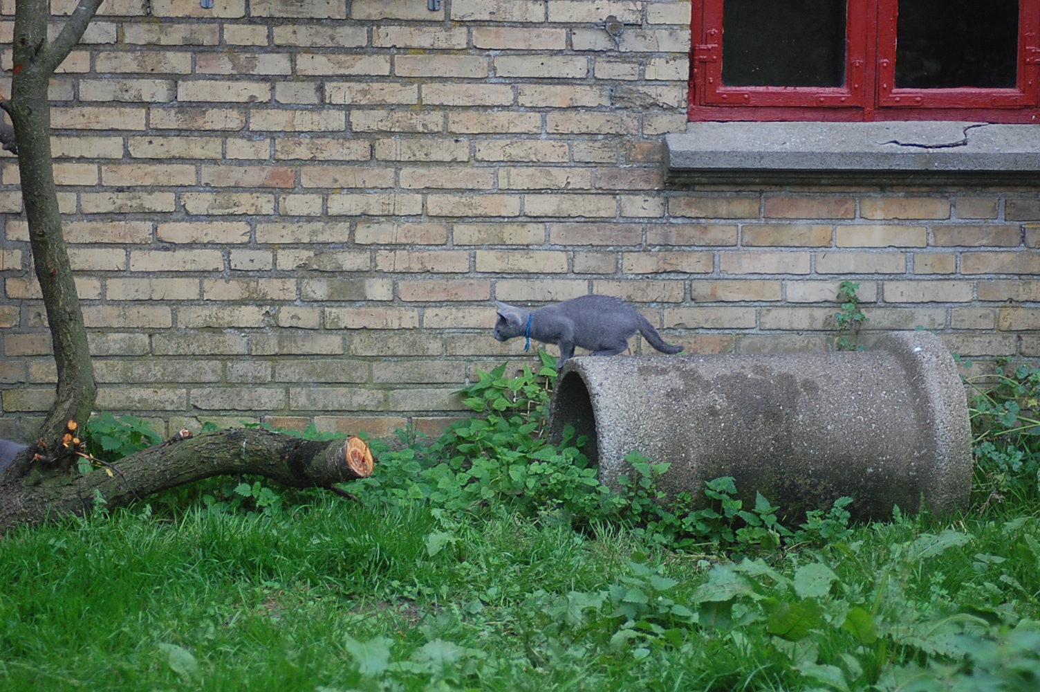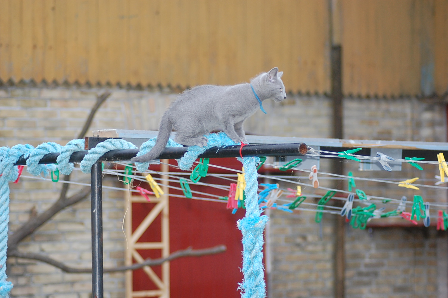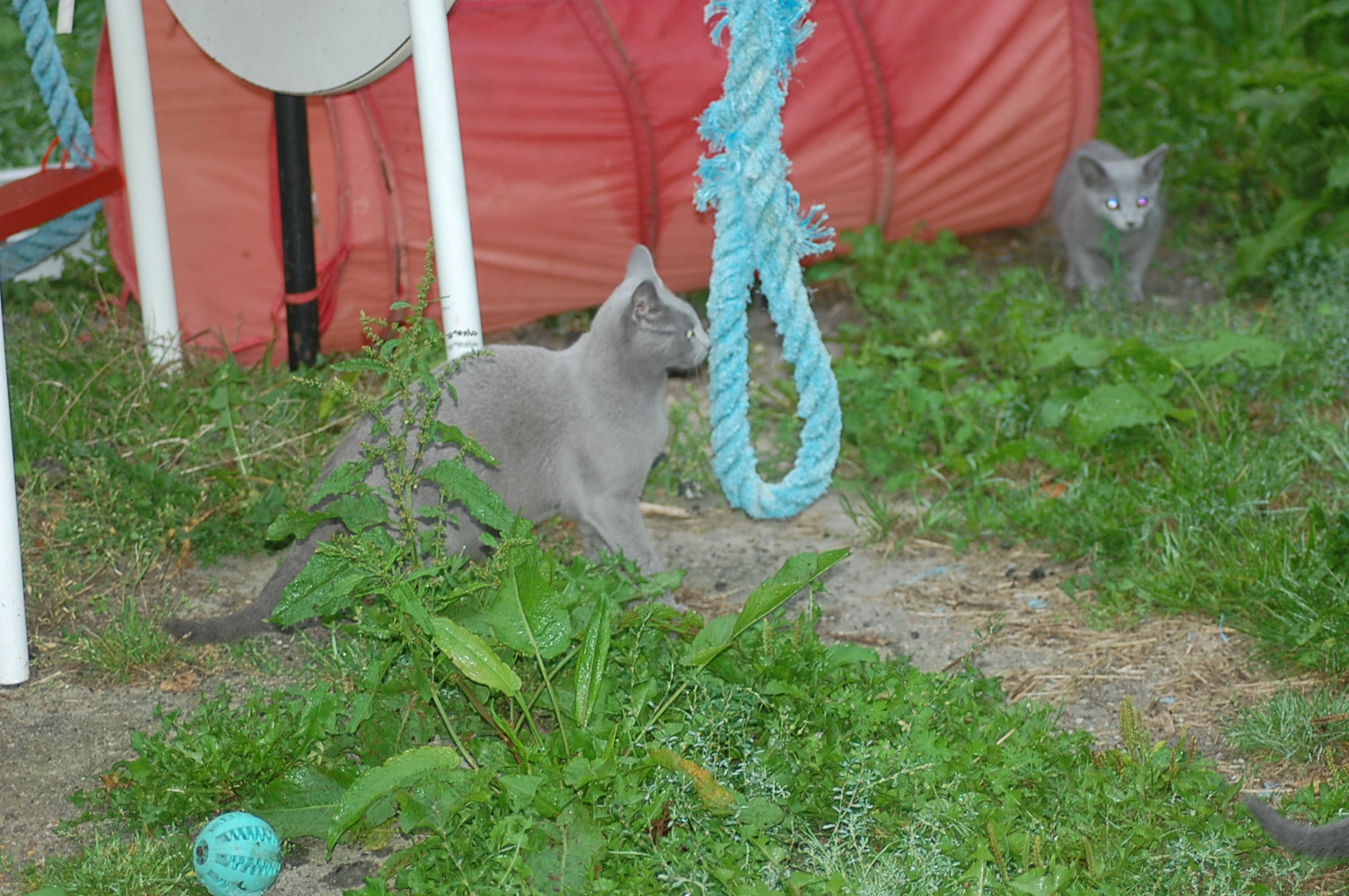 Det er jo så stor en fornøjelse for mig at se mine katte lege og klatre rundt på den legeplads jeg har lavet til dem, at jeg bliver ved med at finde gode motiver at fotografere. Det har taget nogle dage før kattene har fundet ud af at man kan klatre op af sådan noget kraftigt tovværk, men da først èn af dem havde prøvet, så fulgte de andre hurtigt efter. Det er tilsyneladende meget mere vanskeligt for dem at finde ud af hvordan man kommer ned igen , og Cindy stillede sig op og mjavede højlydt, til jeg kom og reddede hende. Jeg har jo planlagt en nemmere måde til dem at komme ned igen, men de kan jo ikke vente til jeg er færdig med at bygge den.