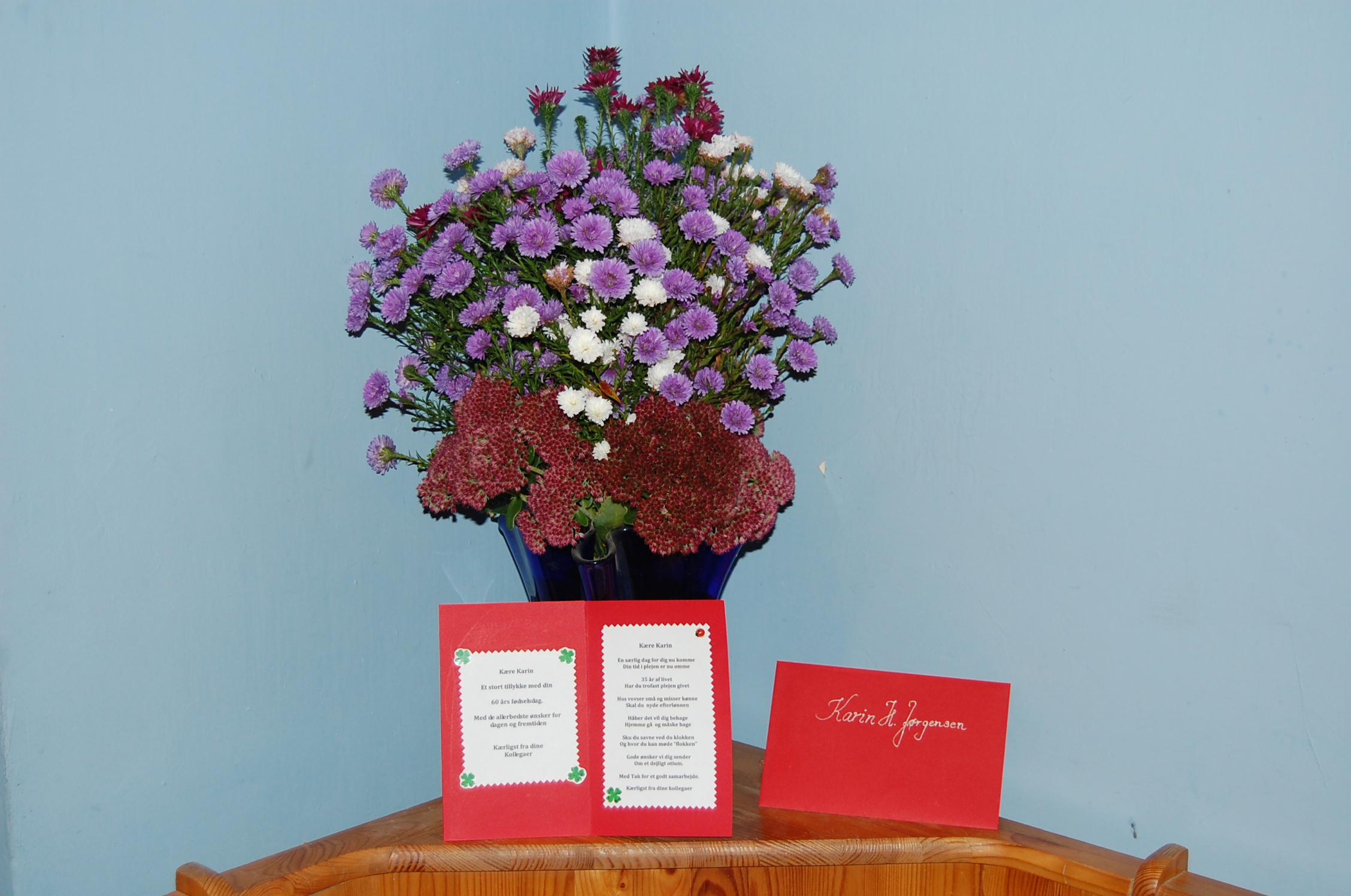 sikke dejlige blomster og bøger du har fået, nu må du rigtig nyde livet med dine dejlige hunde.
