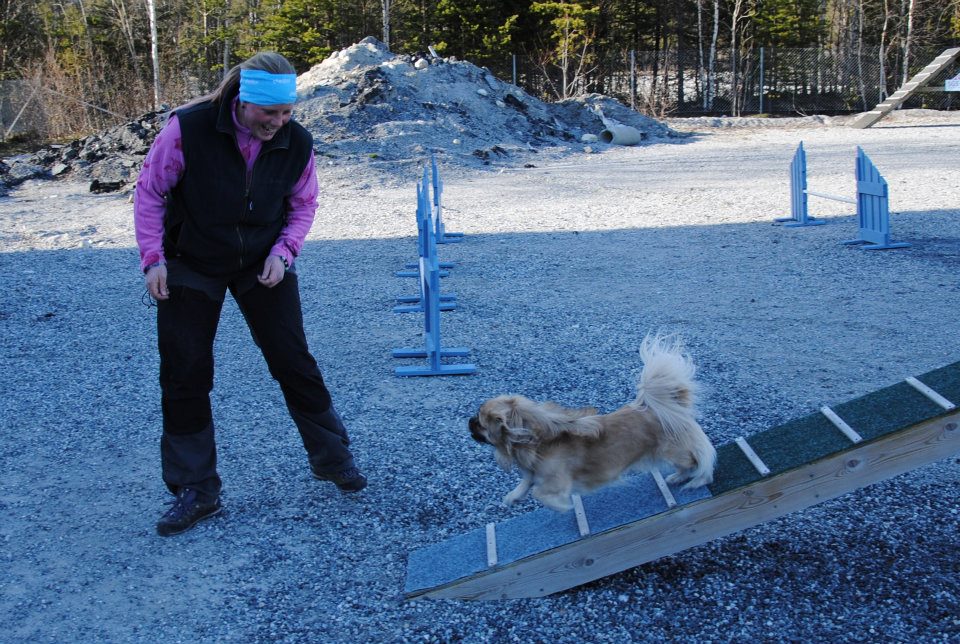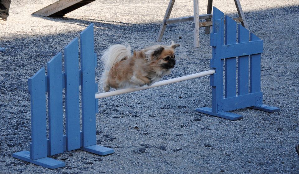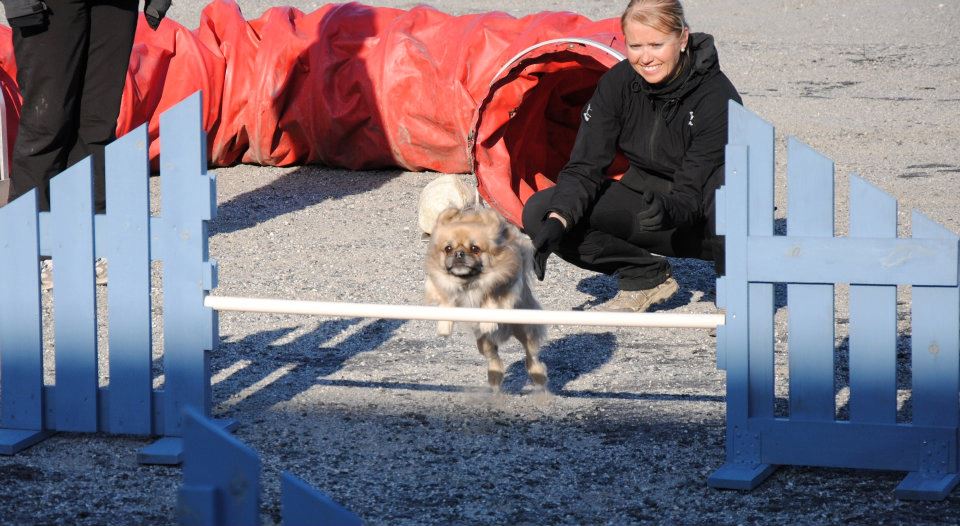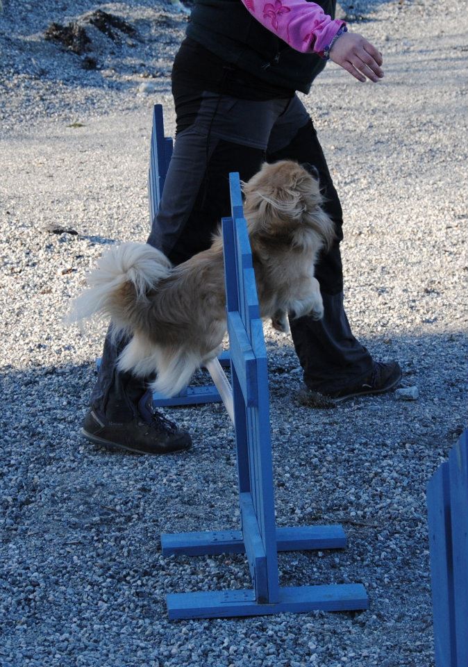 Jeg bliver ofte spurgt om sådan en lille selskabshund nu også kan det samme som en ” rigtig ” hund, og jeg svarer hver gang at en tibbe absolut er en meget alsidig hund, og at det jo kommer an på ejeren, hvor meget hunden får lov til at lære at kende. En Tibetansk Spaniel kan jo følge med sin ejer på ture i fjeldet, og alle andre steder i naturen, men til træning, både i lydighed og i agility er det jo ejerens motivation af sin hund, der driver værket. Cuno = Askim`s Se-Dy Cuno, har lige været på udstilling med flot resultat, og når han er til agility så viser disse billeder jo, at han virkelig elsker det. Tusind tak til Anita som giver Cuno et dejligt liv !
