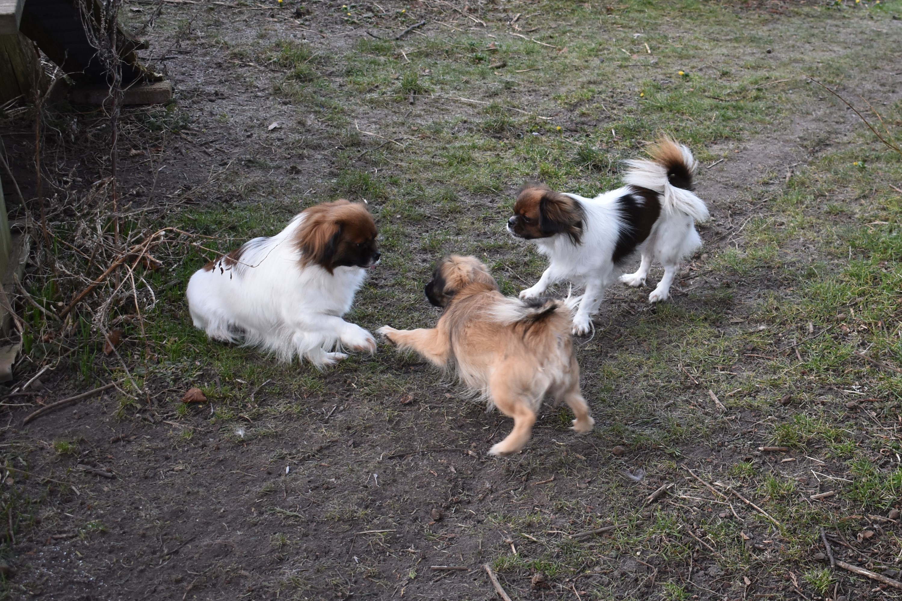 Jeg har lige været ude i haven med nogle af hundene. Koldt og klart vejr der inspirerede hundene til vild leg og især var det sjovt at se at Aiko og Ayla( der er kuldsøskende ) havde gang i vild tagfat rundt i hele haven sammen med Silke der bor sammen med Aiko. Jeg har rigtig mange gange reddet den stofbold der er en bjælde i, så den kunne blive vasket fri for pløre og komme med ind, men hver gang er der èn af hundene der stjæler den med ud igen. Legetøj er åbenbart sjovere udendørs, men det holder ikke så længe som det gør hvis det bliver inde i huset.