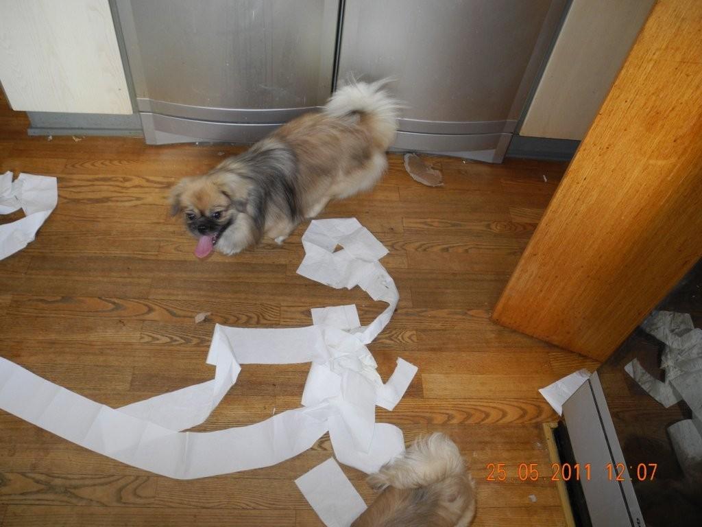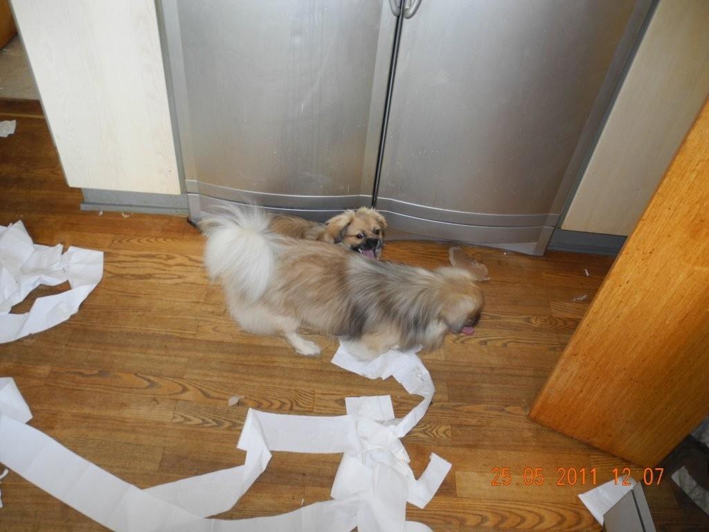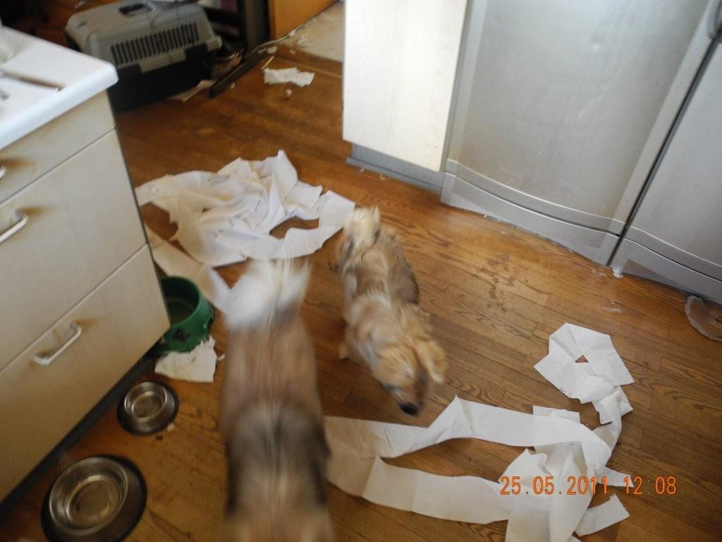 Sådan går det, når mor lader os (nok mest mig) være alene hjemme i alt for lang tid – men hun kan jo lære at lukke dørene