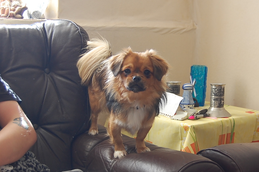 er en glad lille hund der har nogle yndlingspladser i hjemmet og en af dem er højt oppe på sofaryggen hvorfra hun kan se ud af vinduet og overskue alt hvad der sker ude på vejen. Andre steder hun holder af at være er i favnen på den der lige nu er udvalgt til at kæle med hende, og liggende i sofaen og sengene.