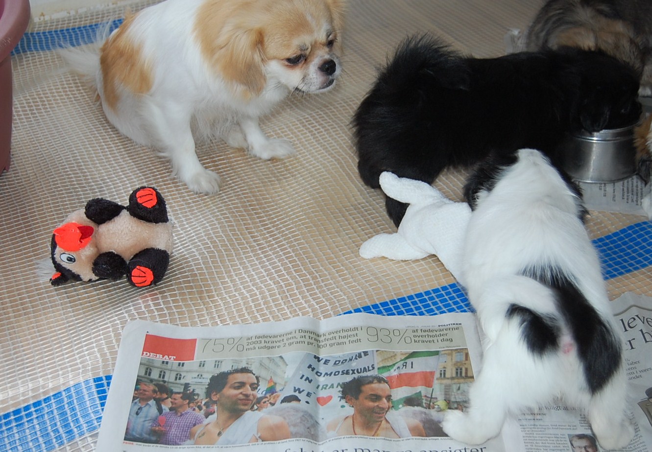 Jeg kan bare ikke forstå, at den presenning du har lagt i bunden af hvalpegården, kan holde til dem. Hos mig ville den holde ca. 5 min !