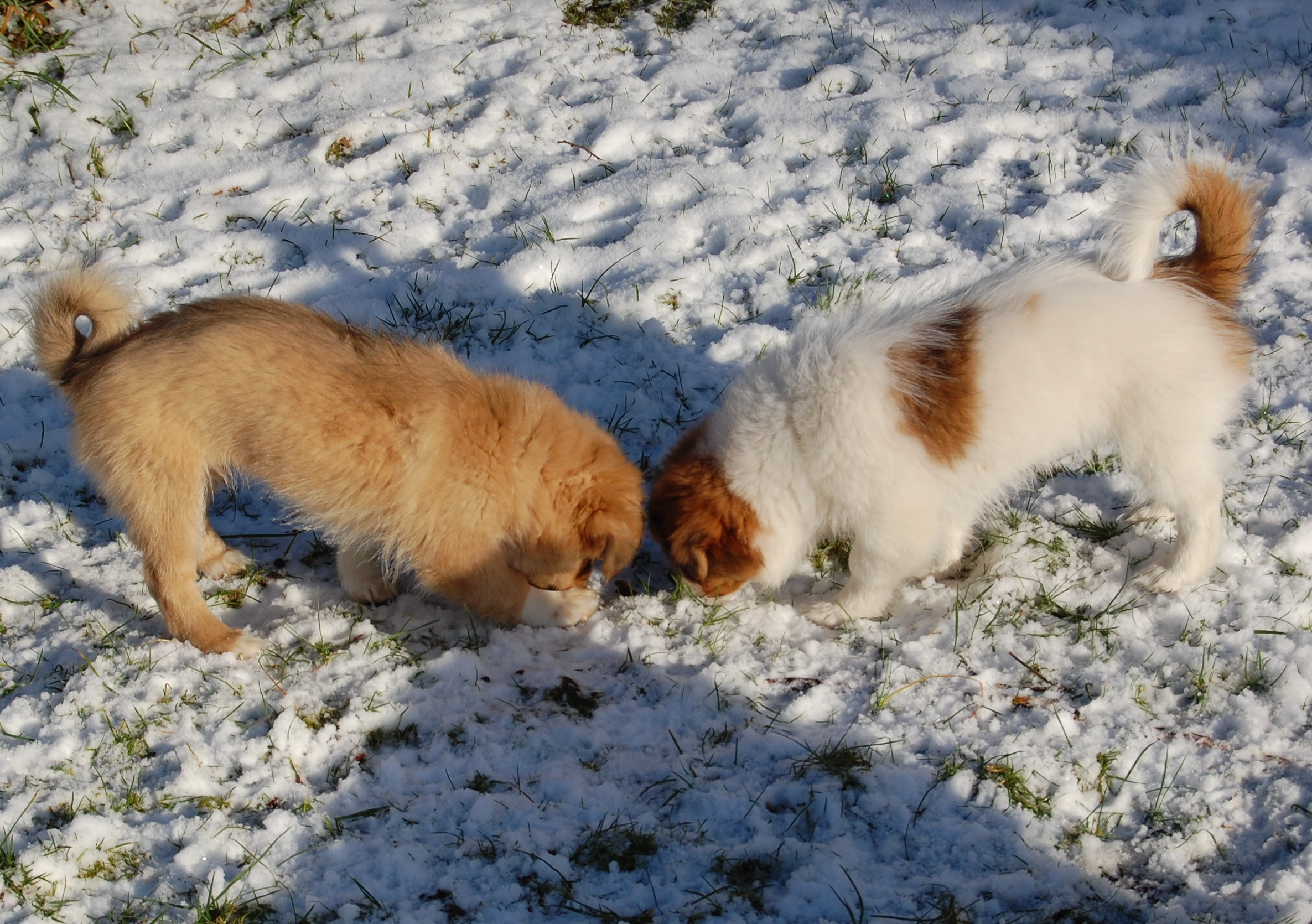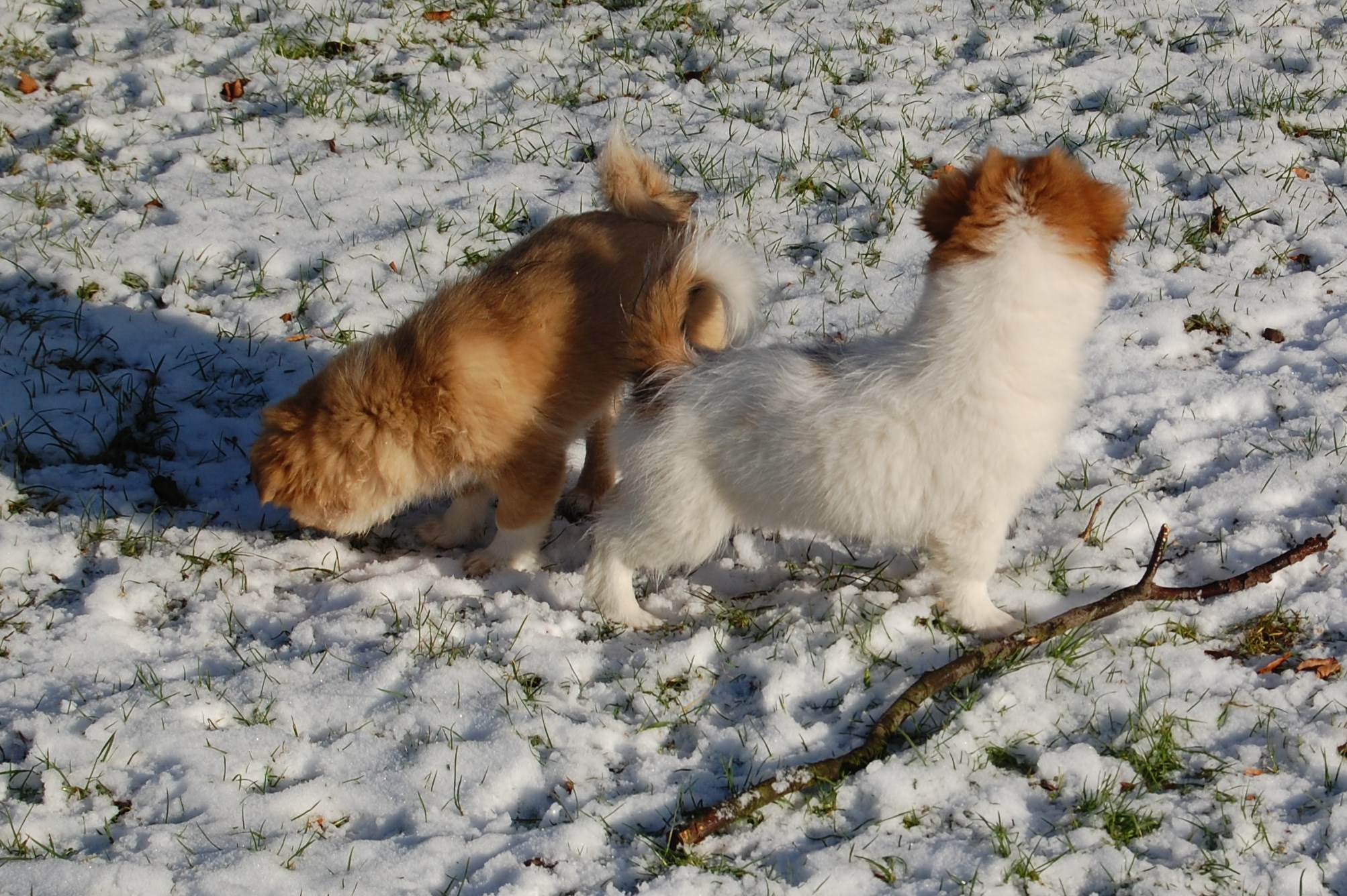 Indtil nu er det jo ikke meget sne vi har haft, det har mest været regn og mørke dage, derfor måtte jeg jo ud med kameraet da der lå lidt sne og solen også kiggede forsigtigt frem. Jeg valgte at det var Cindie og Cæsar jeg ville tage billeder af og resultatet vil jeg vise jer her.