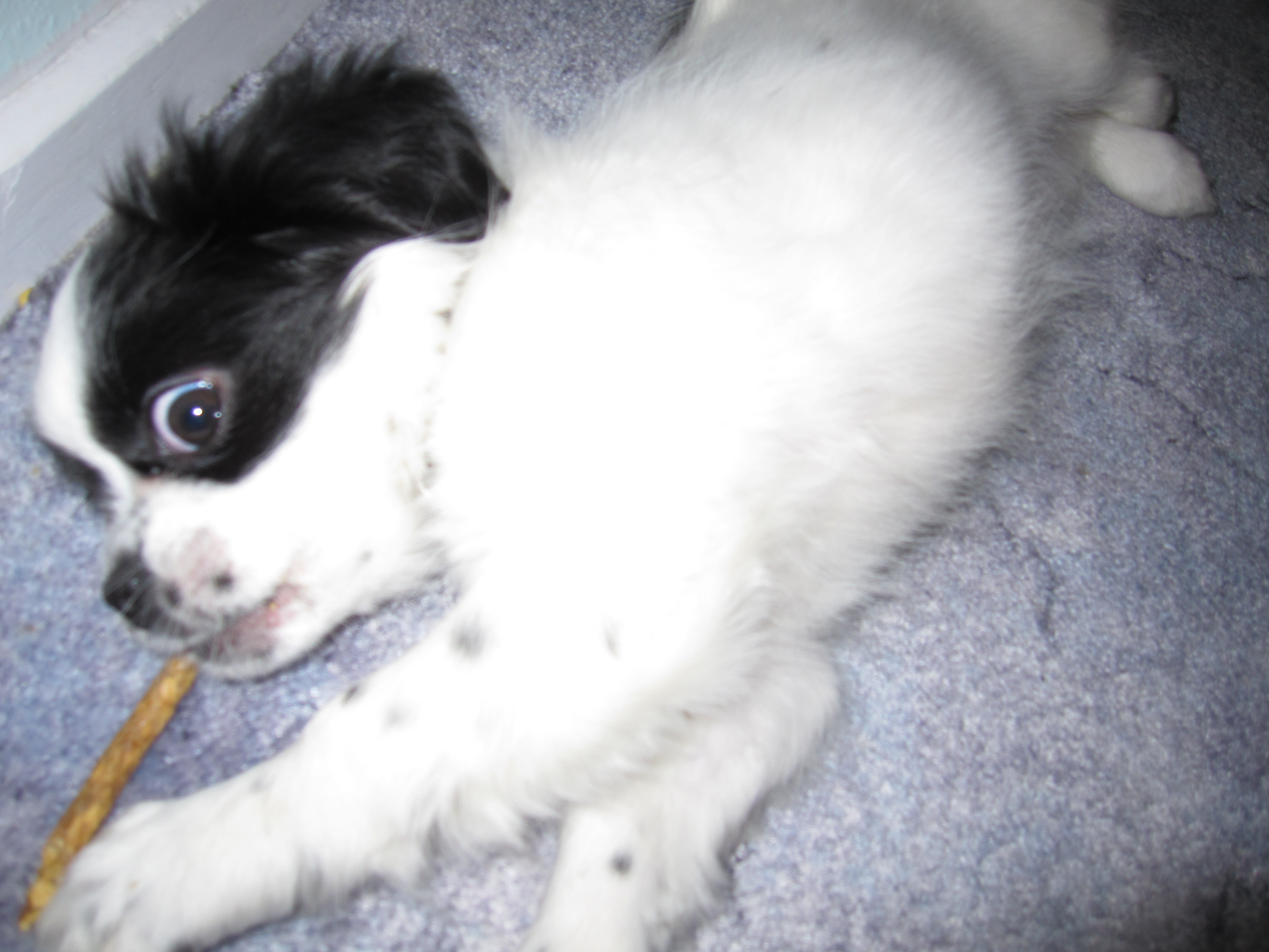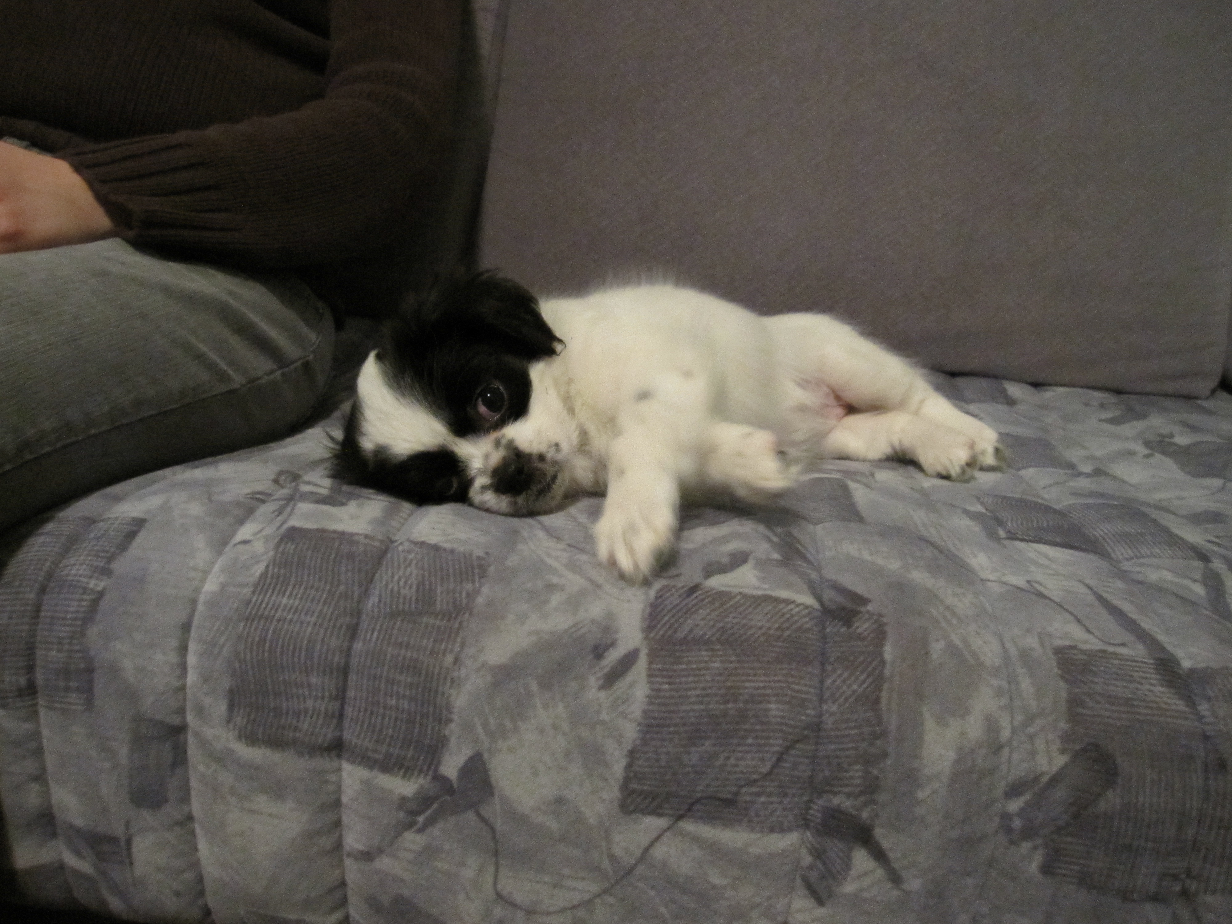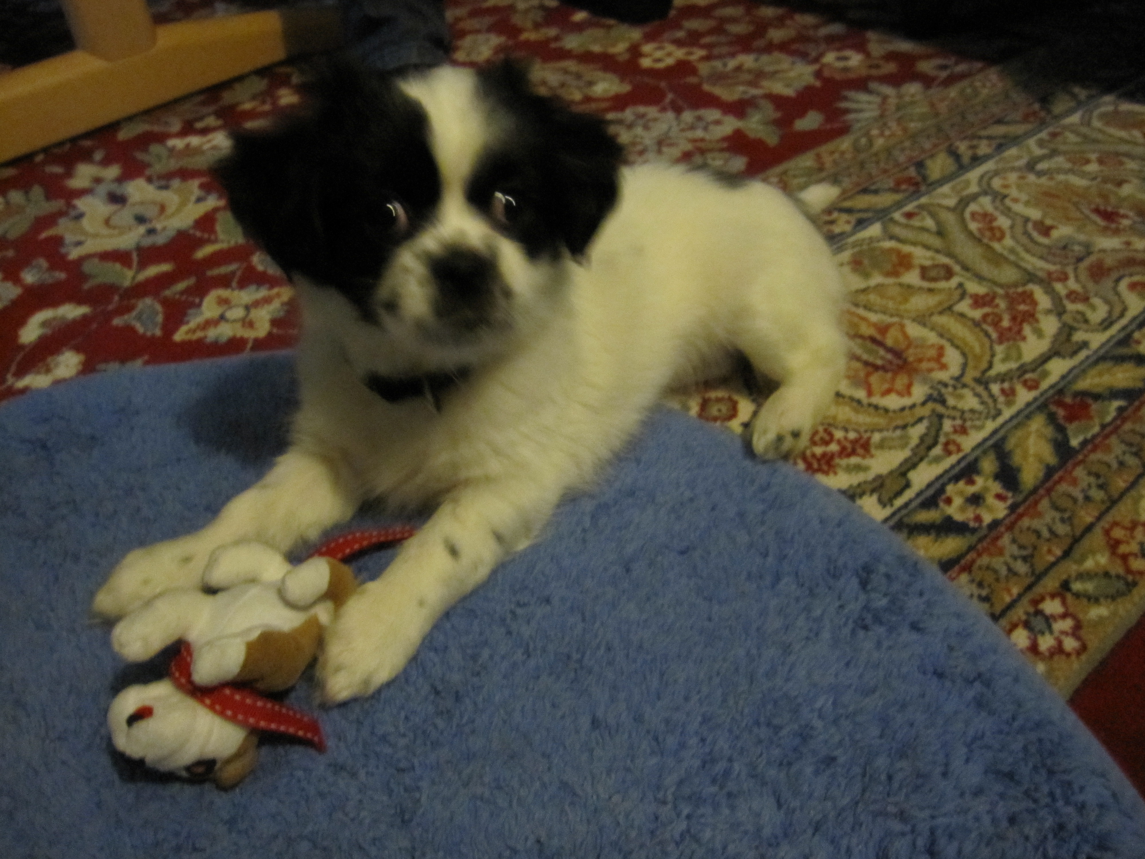 har hendes nye ejer sendt mig billeder af i dag, og hun fortæller at hun er en meget elsket og forkælet, glad lille tibbe. Jeg ved jo godt at den nemmeste måde at tage billeder af en livlig hundehvalp på, er når den ligger roligt ned, men som opdrætter ville jeg jo meget gerne se et billede af hende hvor hun står op, og hvor billedet er taget lige fra siden, så jeg kan se hvordan hun udvikler sig. Lilo var en af de sødeste og blideste tibbehvalpe jeg har set og hun elskede at blive kælet med, så jeg er slet ikke i tvivl om at hun har sørget for at hele familien er faldet for hende. Jeg håber at vi får lov til at følge med i hvad der sker med hende fremover.