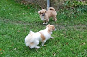 I dag har jeg taget billeder af en af de hvalpe jeg har været allermest spændt på at se som voksen. Milla skulle have sit sidste kuld hvalpe og jeg havde haft hende sammen med Vani hver dag indtil hendes løbetid var forbi. Hundene legede og hoppede på hinanden, men de kom ikke til at hænge sammen, og jeg var skuffet. Milla fik dog alligevel et smukt kuld med fire hvalpe og hun var slet ikke den eneste, for Bonnie, Olympia og Nilaya fik alle tre også et kuld hvalpe hvor Vani havde parret naturligt, men uden sammenhæng. Milla`s kuld blev simpelthen noget af det smukkeste jeg har set : Askim`s Mi-Va Rajah = Speedy blev solgt til USA, han er blevet champion derovre og de tre tæver er her i Danmark. Runa kom her i går aftes og da var det allerede mørkt, men i dag ville jeg have billeder af hende. Hun er vild med min store have og jeg havde taget hendes kuld søster Ronja og lille Liva med ud som hun kunne lege med. Hun er bare så energisk og flyver så hurtigt forbi kameraet, at billeder meget ofte bliver tågede. De rigtigt gode billeder må det nok vente med til en solskinsdag, hvor hun kan være derude indtil hun er godt og grundigt krudtet af, og ikke som det gik i dag, hvor en regnskylle fik os til at fortrække derude fra.