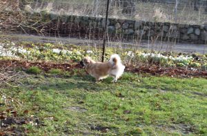 Eddie har været på besøg her og jeg har præsenteret ham for de fleste af mine hunde, faktisk er der kun en af dem som han ikke har leget med, og det er hans far Vani som tydeligt fortalte at den myldrende store teenage hvalp, gad han altså ikke have noget at gøre med. De stod på hver sin side af et gitter og Eddie viste alle tegn på hvalpemanerer, men når Vani ikke havde lyst til kontakt så var der ingen grund til at forsøge det mere. Alle mine andre hunde ( og også min anden hanhund Chilli ) accepterede ham fint, og jeg vil tro at han vil sove et par dage når han kommer hjem igen, for der har godt nok været fuld fart på legen her.