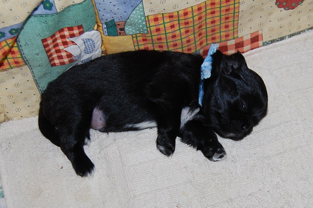 Hundehvalpene er bare så kedelige – – de sover og spiser, sover så lidt igen. Andie har masser af mælk til dem og jeg hører dem faktisk aldrig, hun klarer det hele selv, en rigtig mønster mor. De vokser rigtigt hurtigt og de er da begyndt at gå lidt på benene, men så bliver de hurtigt så trætte at når jeg har fået kameraet frem, så sover de lidt igen