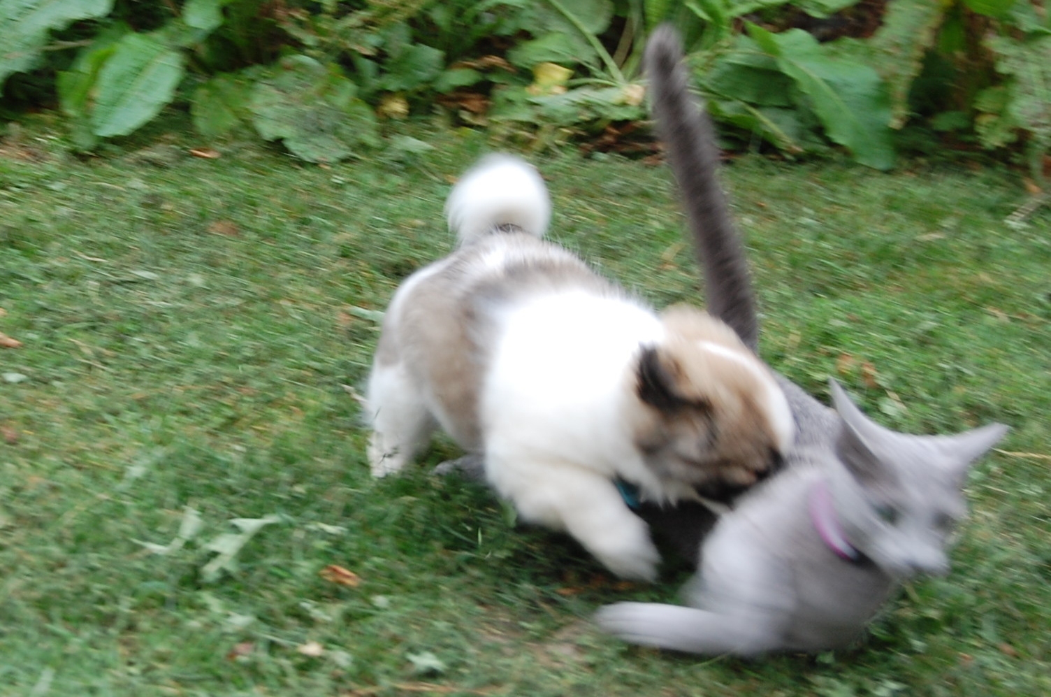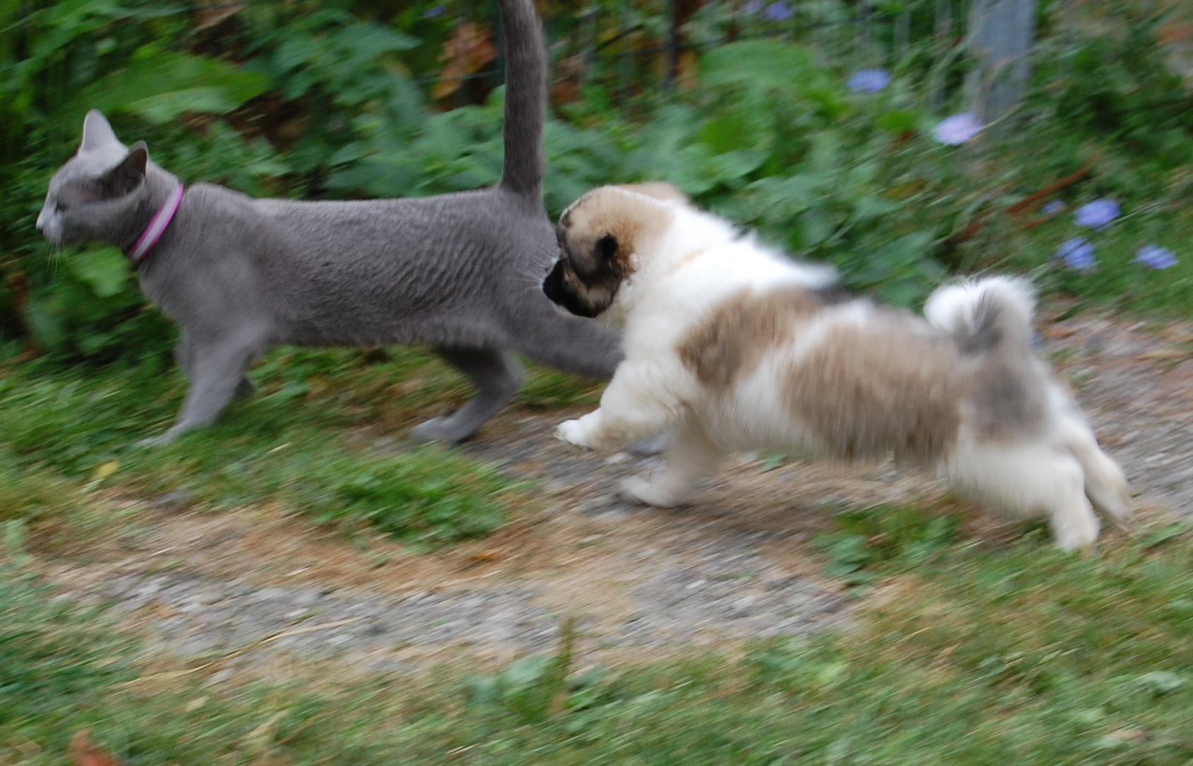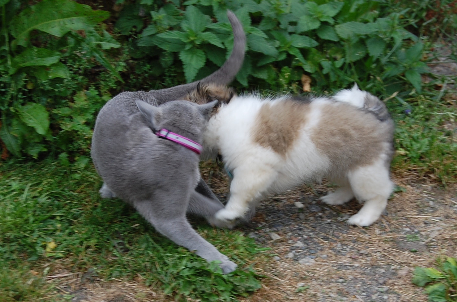 Unique sover selvfølgelig ind imellem, men når der er gang i hende så opdager vi skam hurtigt at hun er vågen. Hun synes at russerne må være her som legetøj for hende, og hun bruger dem til angrebsmål. Jeg tror at at de udmærket er klar over at hun er en baby, for jeg har endnu ikke set at de har har gjort hende noget, selvom hun sommetider er meget voldsom ved dem. Sommetider tror jeg endda at de med vilje går tæt på hende, så der kan leges lidt.