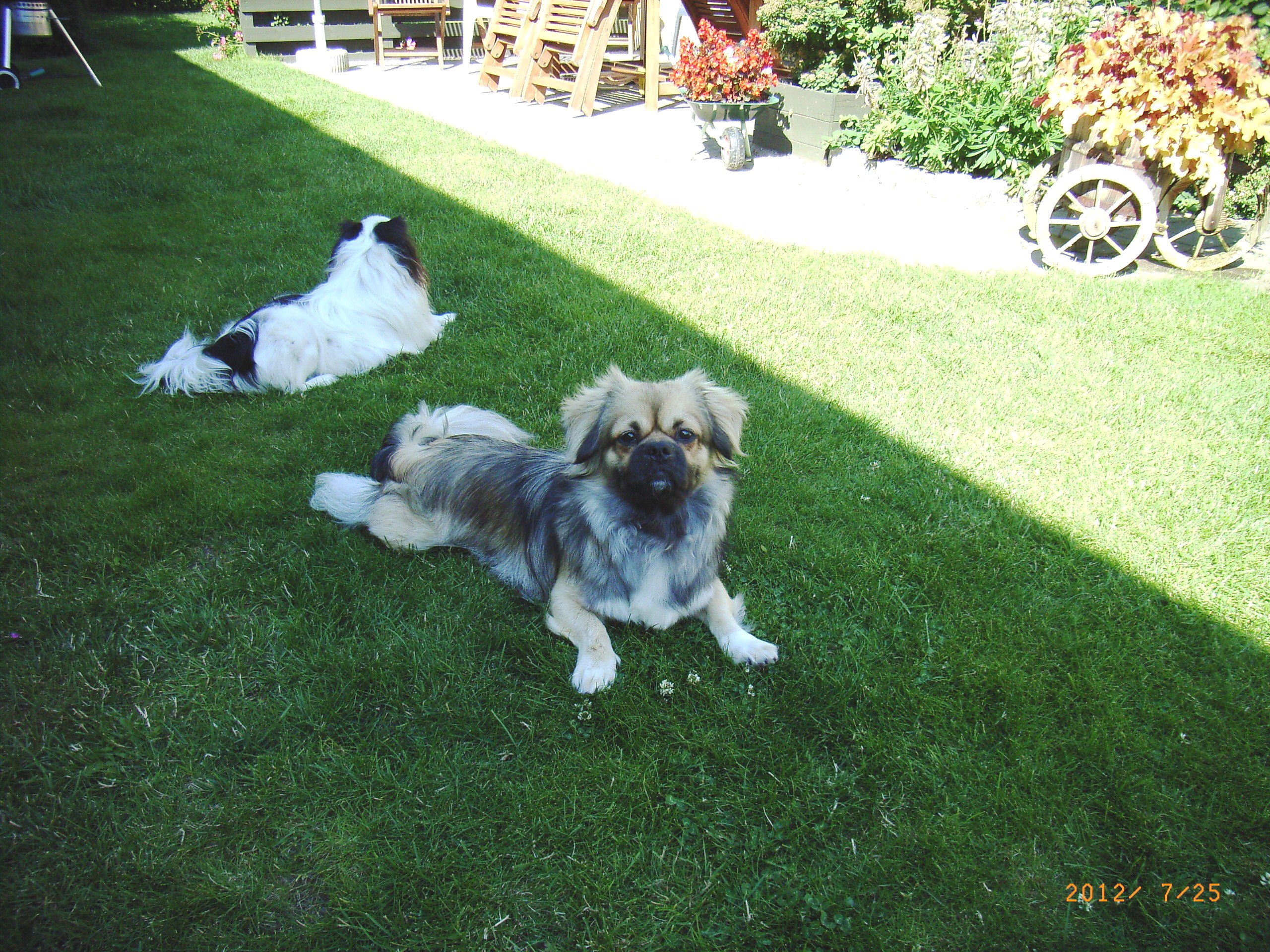 Når vejret er for varmt finder hundene skygge stederne i haven og slapper af der.