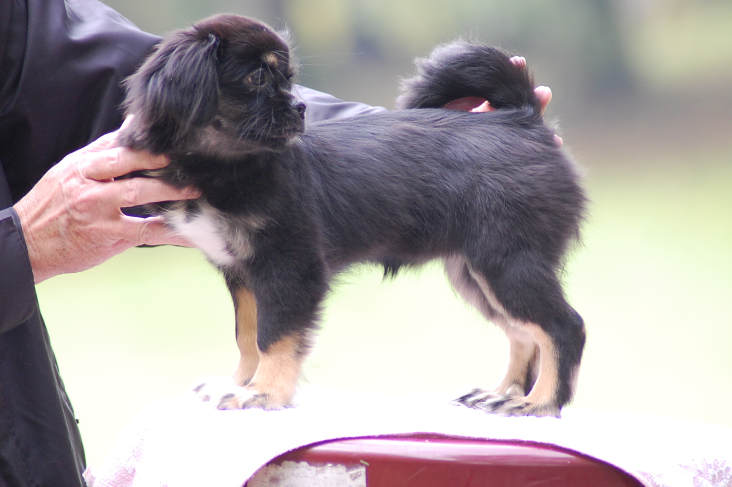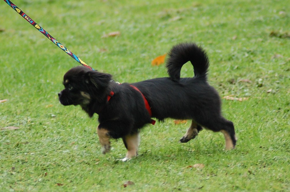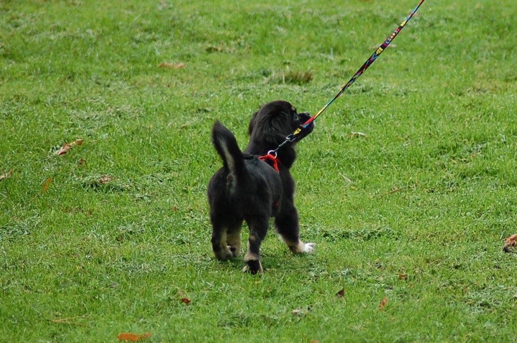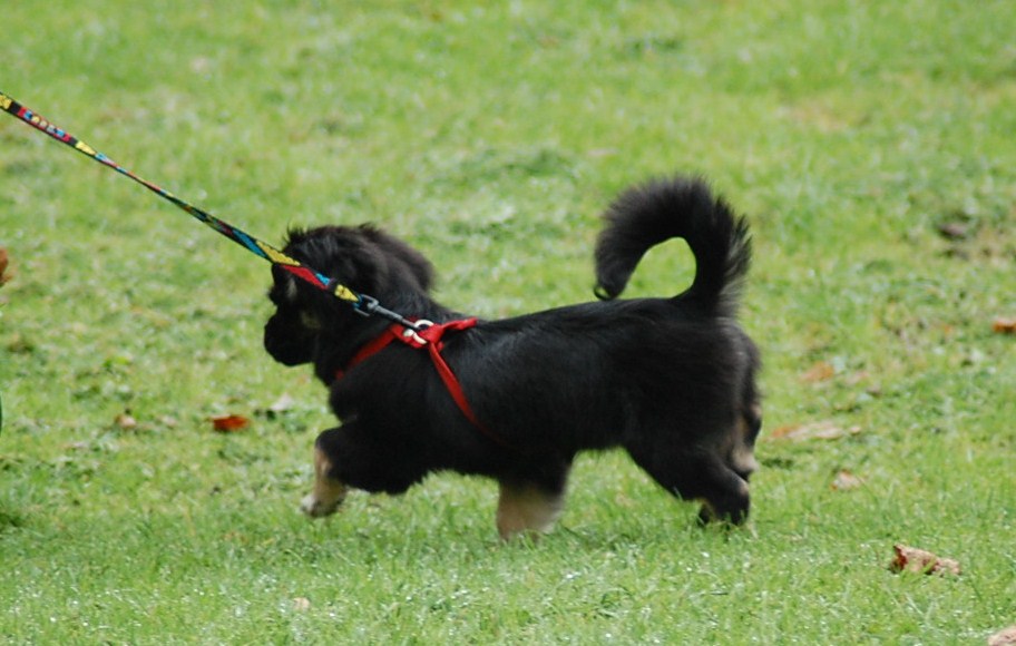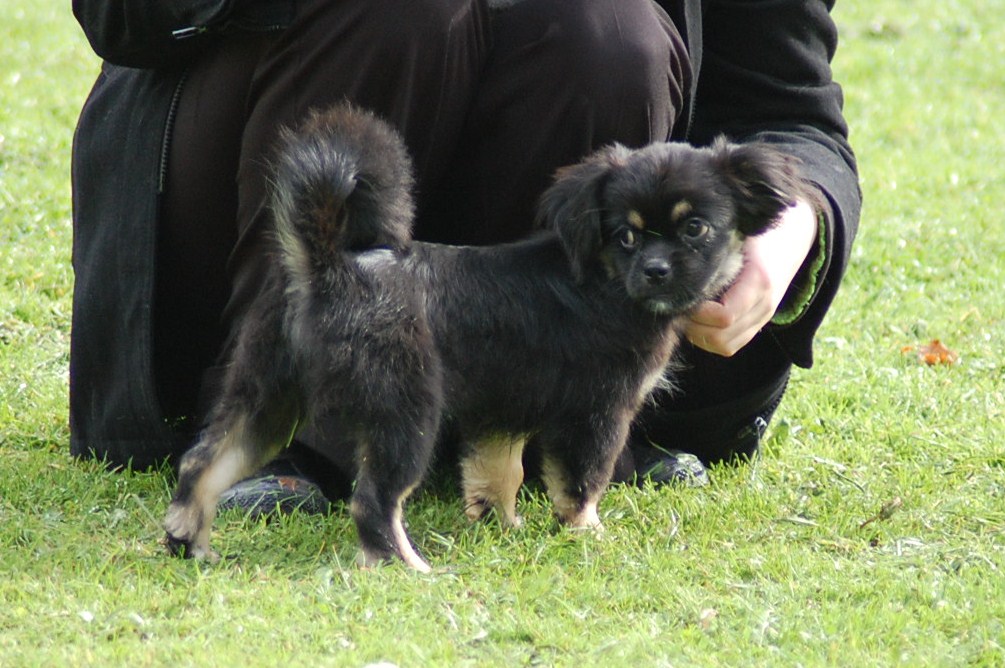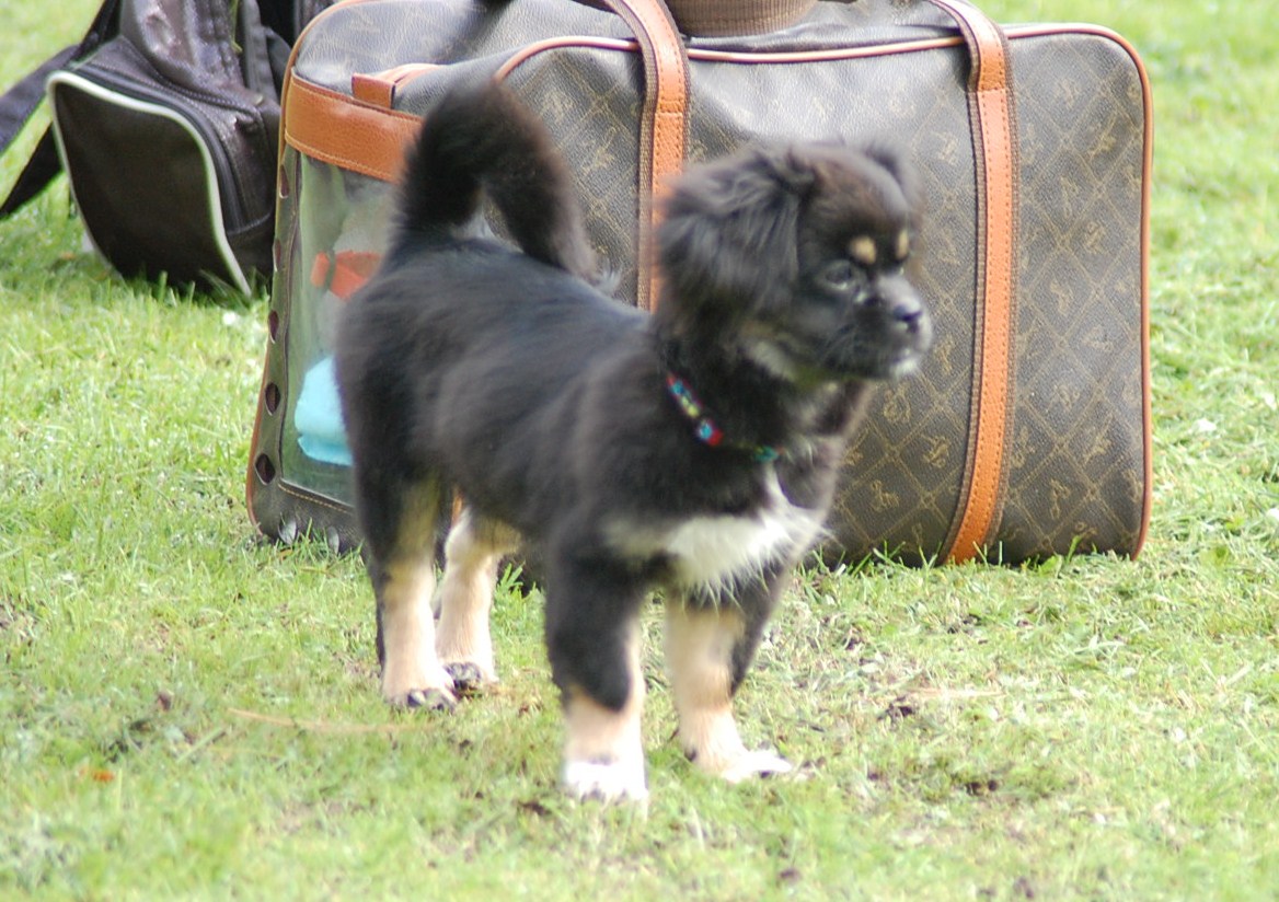 En absolut spændende stamtavle så den lille prinsesse har noget at leve op til. Hun er født d 4/6 2010 så med en alder på 4,5 måned ved vi allesammen at fotografier ikke yder sådan en teenager fuld retfærdighed. Jeg har dog alligevel forsøgt at fotografere hende og de to brødre som opdrætteren havde taget med ved overdragelsen i lufthavnen, for at vise mig nogle af de andre hvalpe i kuldet. Hvalpene blev meget trætte, for da de fik lov til løbe frit i en nærliggende park, fik de brændt rigtig meget energi af, og hun sov stort set resten af eftermiddagen, og hele turen hjem.