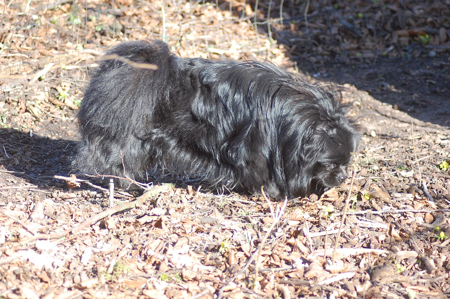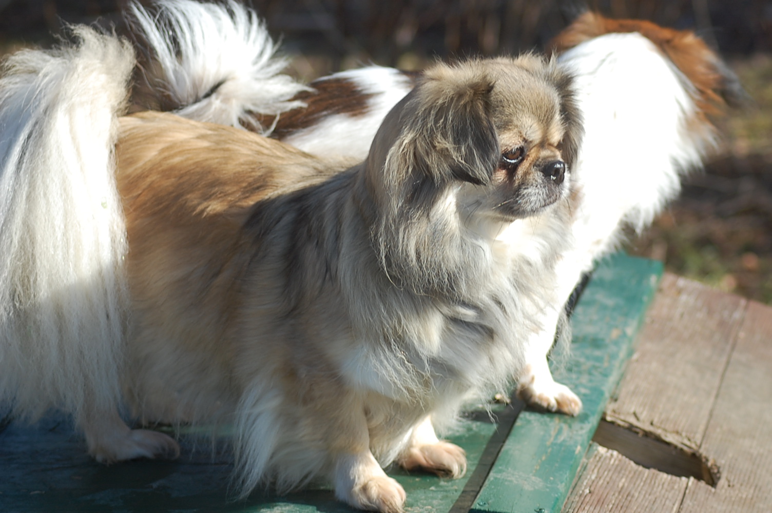 er på vej og vi glæder os til at se hvad der kommer. Næsten alle farver er en mulighed så vi håber på et broget kuld der har arvet det bedste fra begge forældre. I dag ville jeg have billeder af de vordende forældre, for det er dejligt vejr med solskin og forårsfornemmelser i luften, men Andie tripper forsigtigt rundt, med sin temmelig store mave , og Oliver var mere interesseret i forårsblomsterne i skovbunden. Jeg fik dog nogle billeder der viser et par selvsikre tibber, i fuld pels, der nyder en forårsdag i haven.