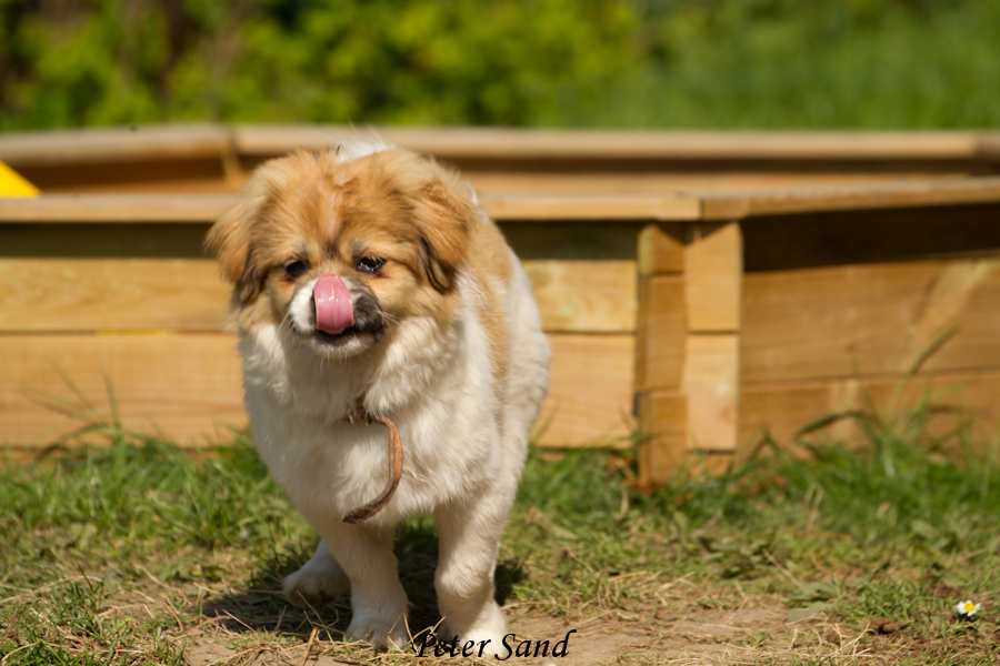 Vi har nu snart haft Jasmin i ca en måned og elsker alt det nye vi lærer om hende. Hun er meget for sigtig når hun møder andre hunde, men så går der små 5 min, så hopper hun rundt og leger, mens hun tror hun er en Sankt Bernhards hund. Hun er meget stille og rolig i vores hverdag, hvor hun ligger i sin nye kurv, hvis hun ikke hugger den store kurv og vogter over den, så vores mops må ligge på gulvet og ellers kan han få et hjørne 🙂 Når hun ikke ligger i sin kurv, leger vi på gulvet eller er ude i haven, hvor hende og Coda leger fange leg eller leger med legetøj, dette nyder de meget. Hun er en rigtig smuk lille prinsesse som har de skønne farver hvid, brun og sort om næsen. Selvom hun kun er 5 måneder er hun en meget rolig hund, som elsker og ligge og putte på sofaen, når en solstråle ud over hende, rammer den, kravler op i sengen eller ligger med hovedet ved vores hoved og slapper af. Første gang hun var med ude og gå tur vidste hun ikke rigtig hvad det var, men et lille nyk og hun har fulgt med lige siden, er rigtig dygtig af sin alder, for hun hopper i kassen når hun bliver bedt om det. Når hun får lov at gå selv når vi er ude, går hun lige ved siden af og skulle hun tage et skridt for an, kigger hun og kommer tilbage.