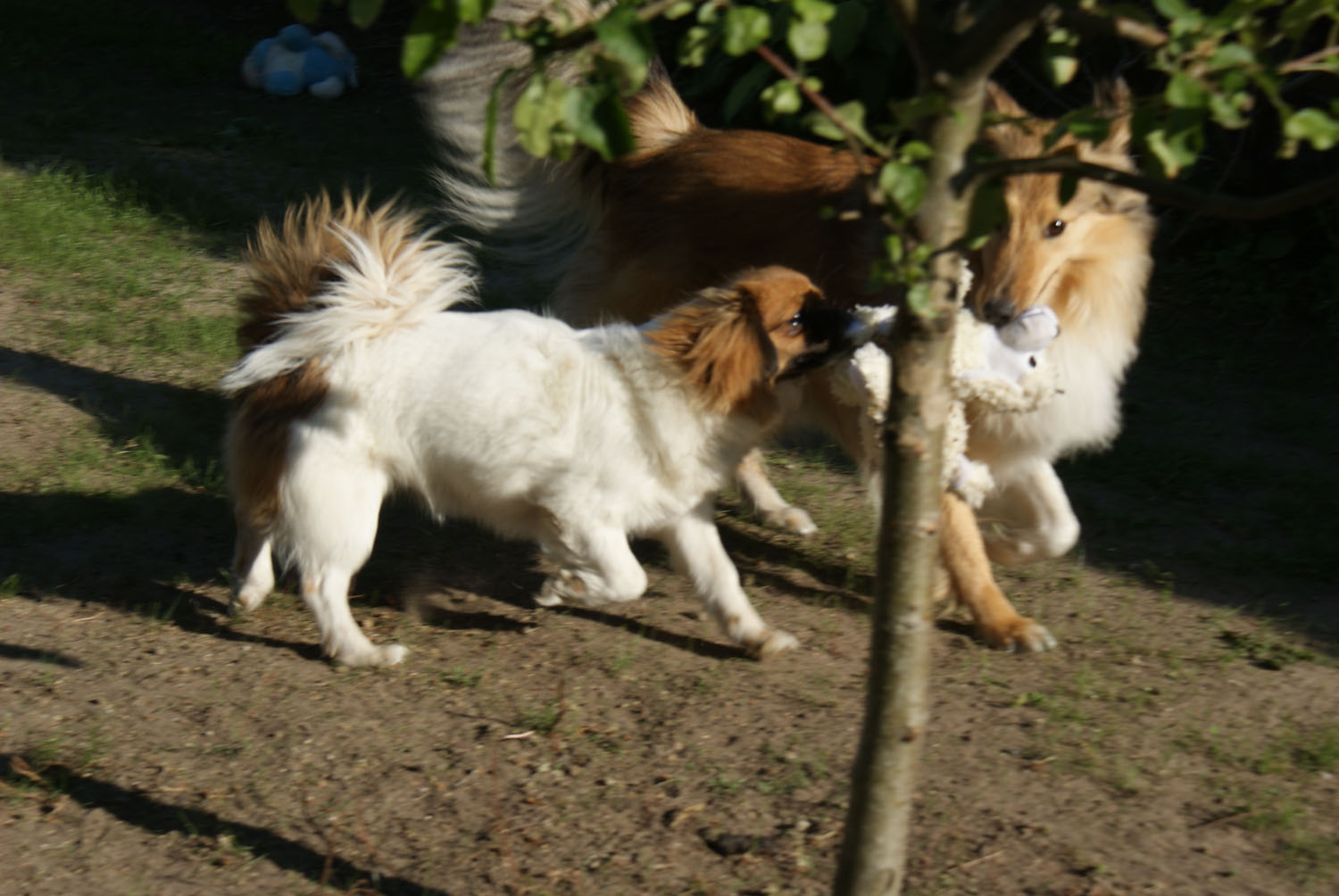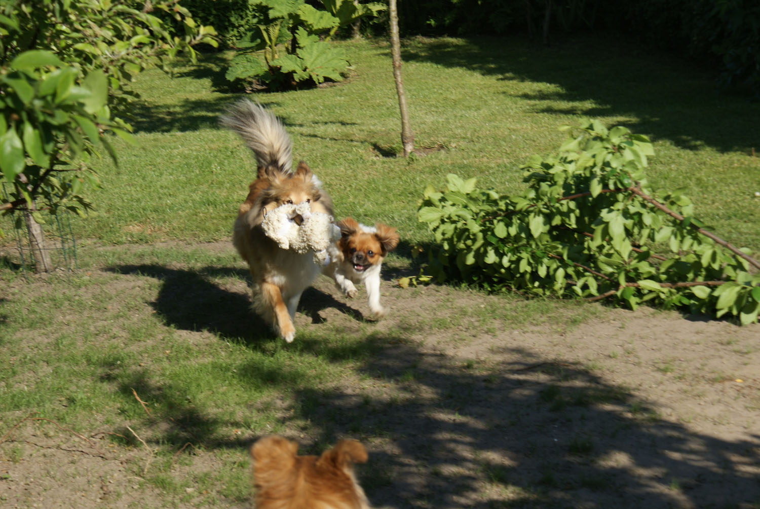Ponya og Akita hjalp til, godt nok trak de i den modsatte retning,,,