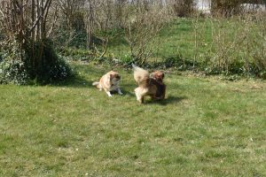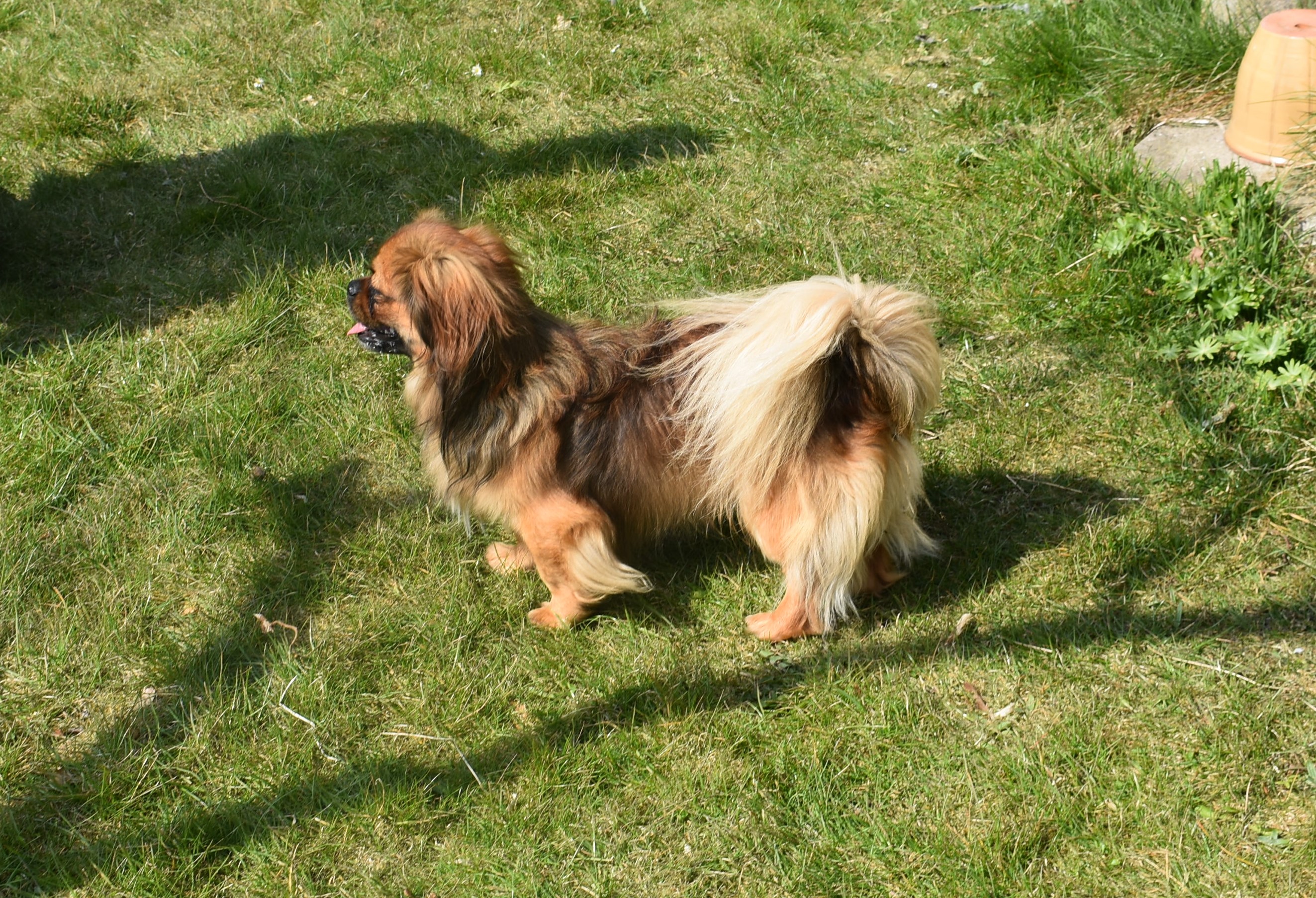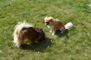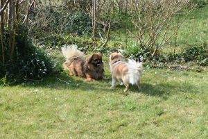 I dag havde Palle fortalt Simon at der kom damebesøg og han var også helt klar henne ved lågen. Han syntes vist at det var uretfærdigt at den tæve jeg havde med fik lov til at lege med Othello. Sidst jeg var på besøg med en tæve da sad Othello i vindueskarmen og græd over at hans far fik lov til at hygge sig med den skønne og derfor havde jeg taget en tæve med som Othello kunne få til selskab imens. Lani, som hedder DK04059/2016 Askim`s Ru-San Lani blev øjenlyst og patella undersøgt i går og øjenlysningen viste Intet påvist og patella resultatet var 0/0. Indavlsprocenten på kombinationen var 0 så der var faktisk kun en eneste ting galt og det var at hun havde nået at gå ud af løbetiden og hun ville bestemt ikke parres, selvom hun syntes Simon var dejlig og man da godt kunne lege lidt med ham.