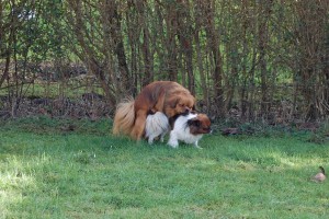 Min smukke og højt elskede Grothovda`s Ley-La har været på kæreste besøg, hos smukke Askim`s Goba. Goba har jo en meget spændende stamtavle med en far, Barrajy Tangerine N*Ice = Buddy, der var importeret fra Australien. Buddy havde den smukkeste mørke røde farve og den gav han videre til Goba. Goba`s mor Cilpa er sort m hvidt så jeg er meget spændt på at se resultatet af denne parring.Begge hunde har fine sundheds resultater og nu er det bare at vente på om der kommer hvalpe ud af det, for jeg synes jo de to hunde klæder hinanden.