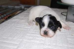 Vi har desværre mistet den mindste af hannerne, men de to sidste hvalpe vokser næsten alt for godt. De er 17 dage gamle i dag og tæven vejer 619 gr og hannen 754 gr. De er lidt kedelige, sådan at forstå , at selvom de har fået øjne, så laver de ikke andet end at spise og sove, der er aldrig en lyd at høre fra dem. Jeg glæder mig til at se dem tulle rundt på gulvet i stedet for.
