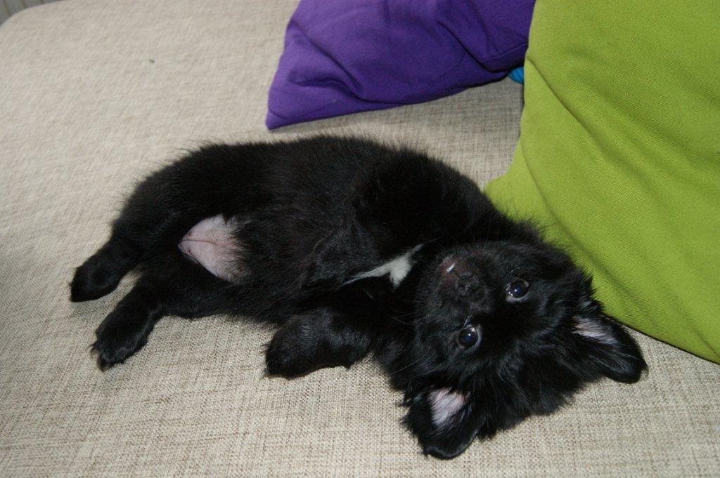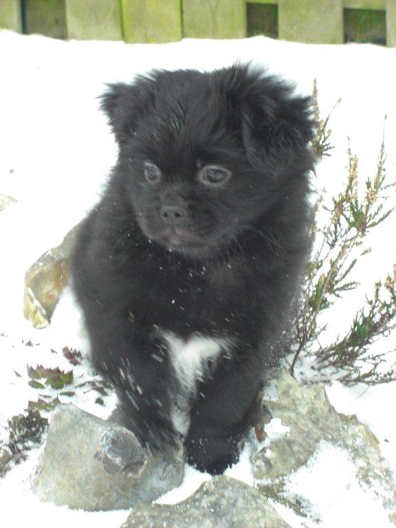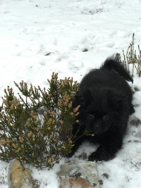Hun er meget glad for at være udenfor og dygtig til at gøre sig ren når hun er ude, men det er jo stadig meget koldt, så hun er også blevet rigtig dygtig til at gå på avisen indedøre,