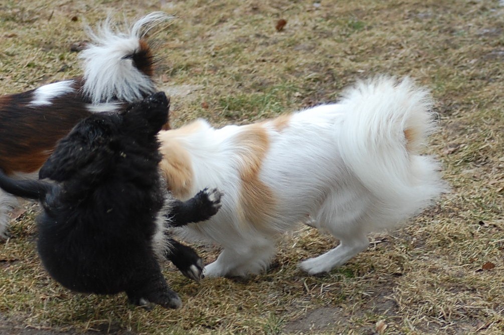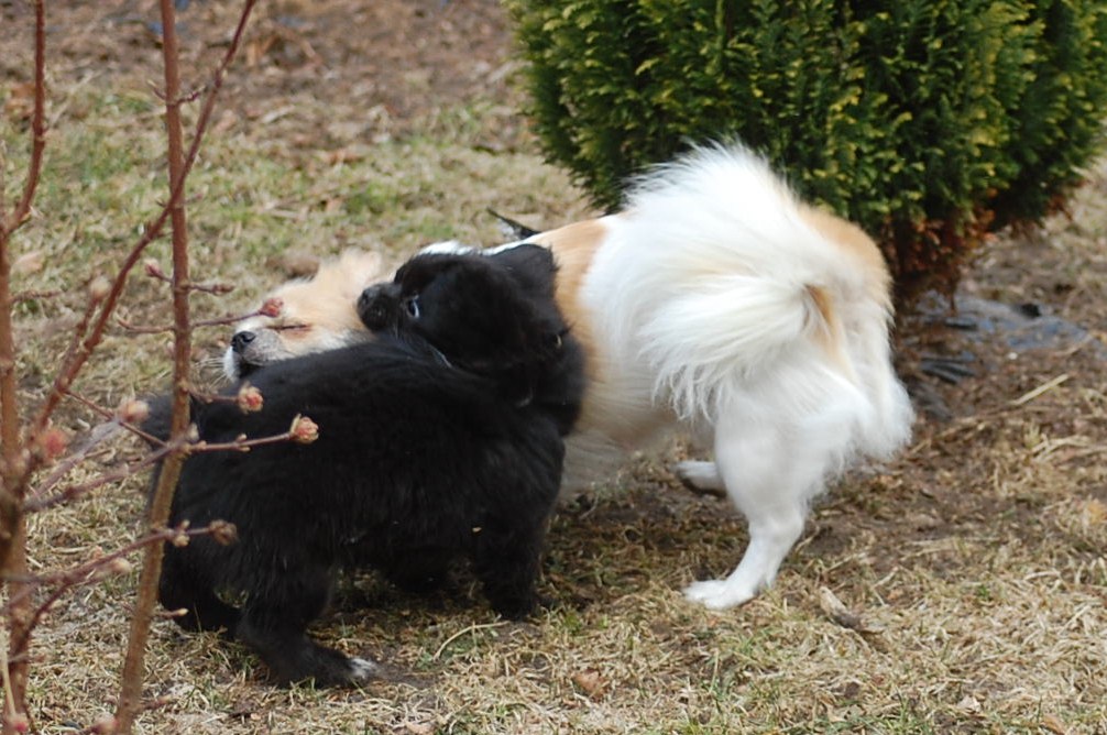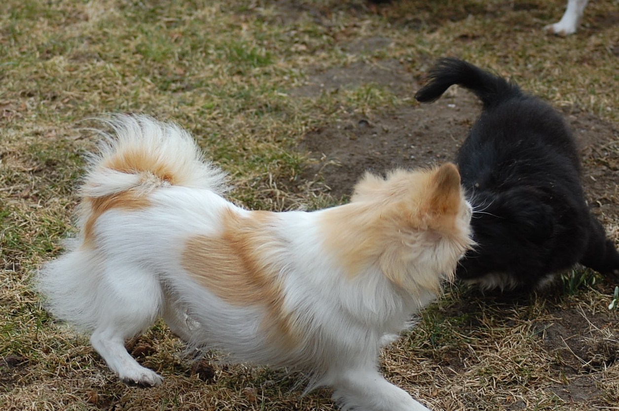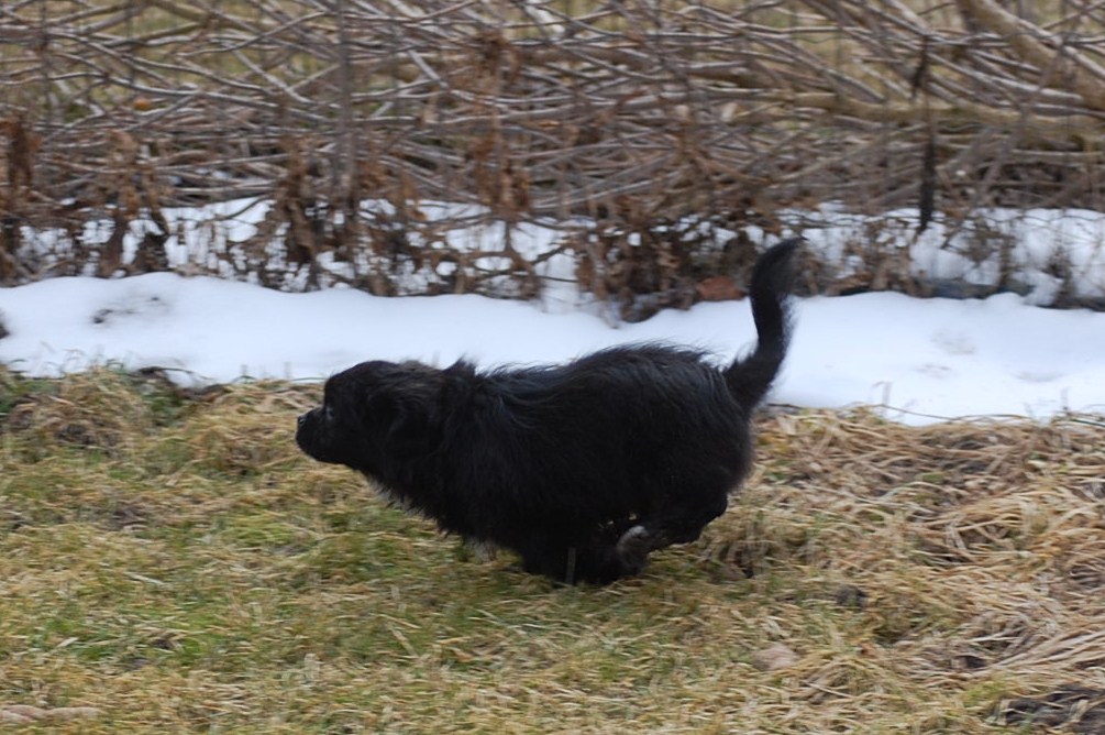 til nye udfordringer på Grønland. Vi har gjort alt hvad der er muligt for at han skulle være klar når han blev afhentet og jeg er helt sikker på at de får en meget kærlig og velsocialiseret hvalp, der er opdraget kærligt og konsekvent, både af mennesker og af alle de andre hunde. Da jeg skulle have et par sidste billeder af ham benyttede hans mor lige lejligheden til at demonstrere, hvordan hun gennem leg har lært ham at betjene sig af alle de rette signaler en sund hvalp skal kende for at begå sig. Jeg håber at hans nye ejere vil blive lige så glade for ham, som vi har været, og vil lade os få lejlighed til at følge ham i hans nye liv.