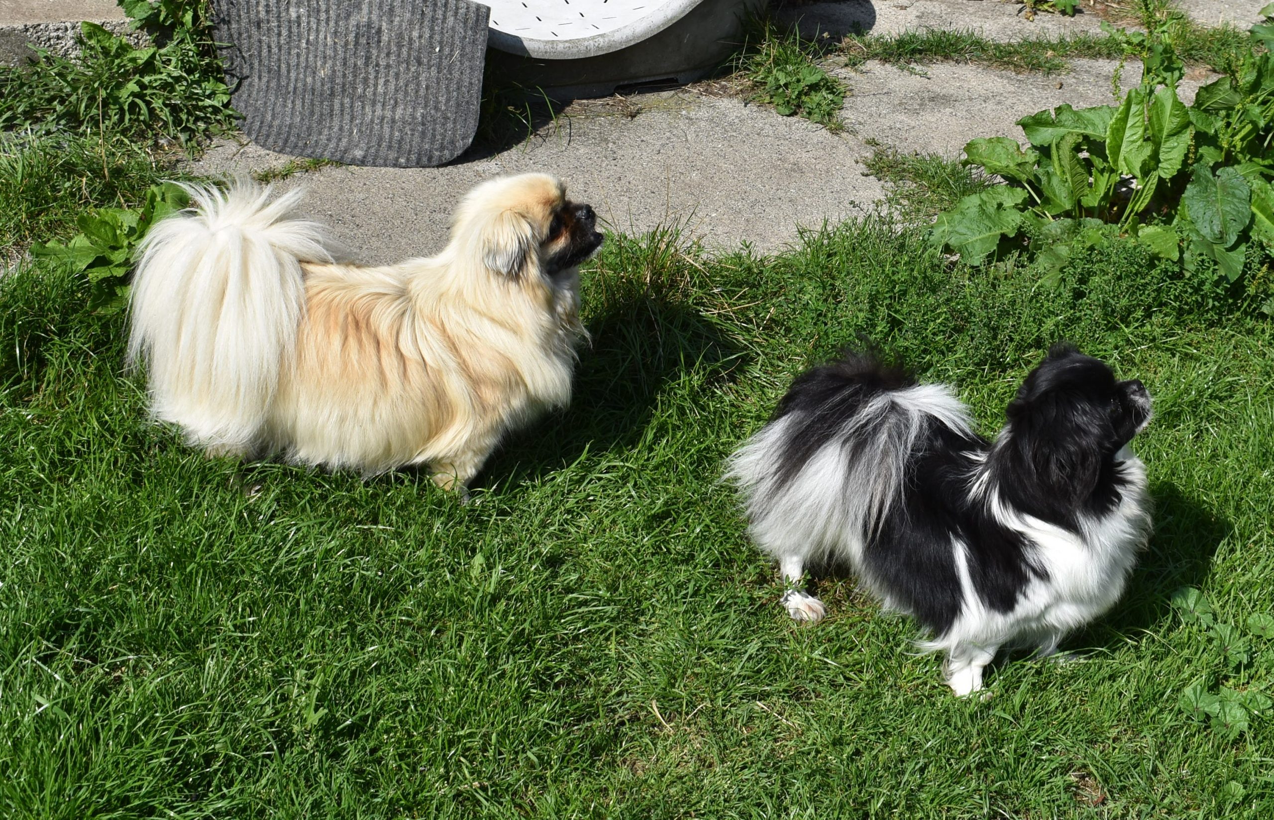 I dag har jeg haft besøg af Timmie der blev født d 3/1 2009, så han er en en ældre herre efterhånden. Han fik lov til at hilse på min søde Thea, og hun var da lige så lækker, at han kom til at savle over hende. Jeg har jo et fladt fad med vand på min gårdsplads som er beregnet til at hundene kan køle deres fødder når det er meget varmt, noget som mine hunde faktisk synes er noget af det værste de kan blive udsat for, våde poter NEJ TAK siger de, og kan allerhøjest tage sig en tår vand af fadet. Timmie syntes at det var dejligt og var flere gange henne og køle sine poter i det, tibber er heldigvis meget forskellige og har også forskellige holdninger til det meste. Timmie har den lækreste pels og især hans hale er overdådig. En smuk og velpasset gammel dreng. Tusind tak til Anette for besøget, kom snart igen.