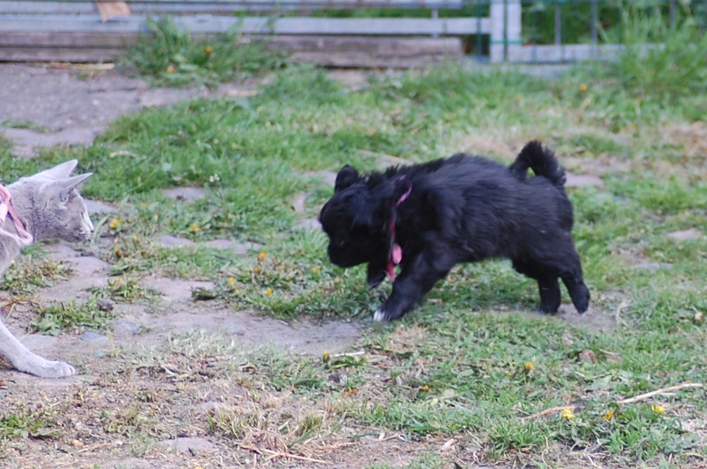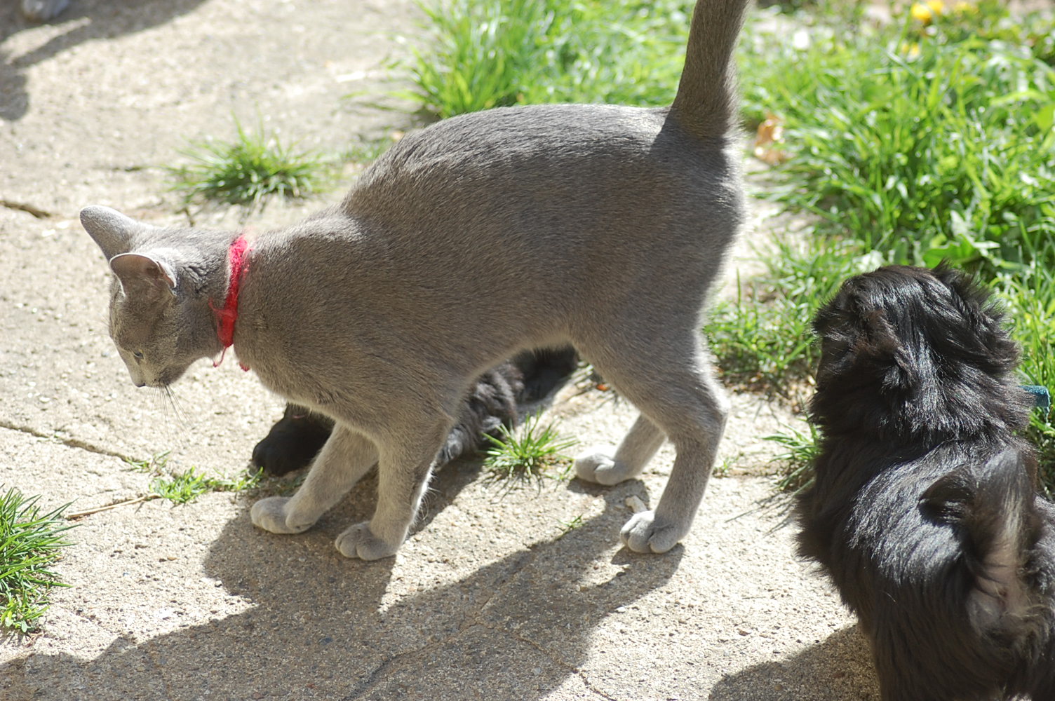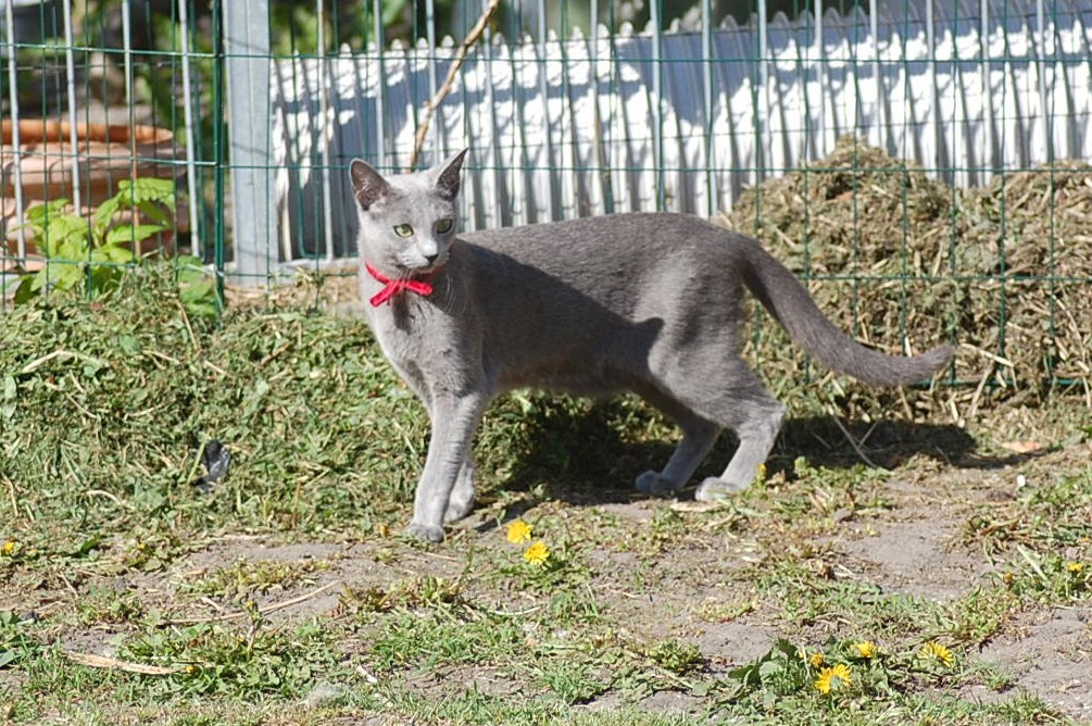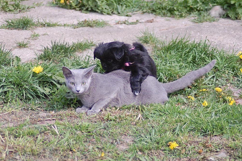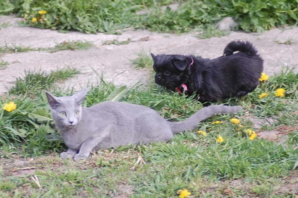 bruger både katte og hunde timer på at nyde det gode vejr og på at få lov til at røre sig. De får også nogle erfaringer i hvordan man skal opføre sig overfor andre dyr, og sommetider kan det gå ret vildt til. Den store træstub der ligger derude har nærmest altid været der, men da jeg flyttede den lidt så rødderne kom op i luften blev den ny og spændende for kattene.