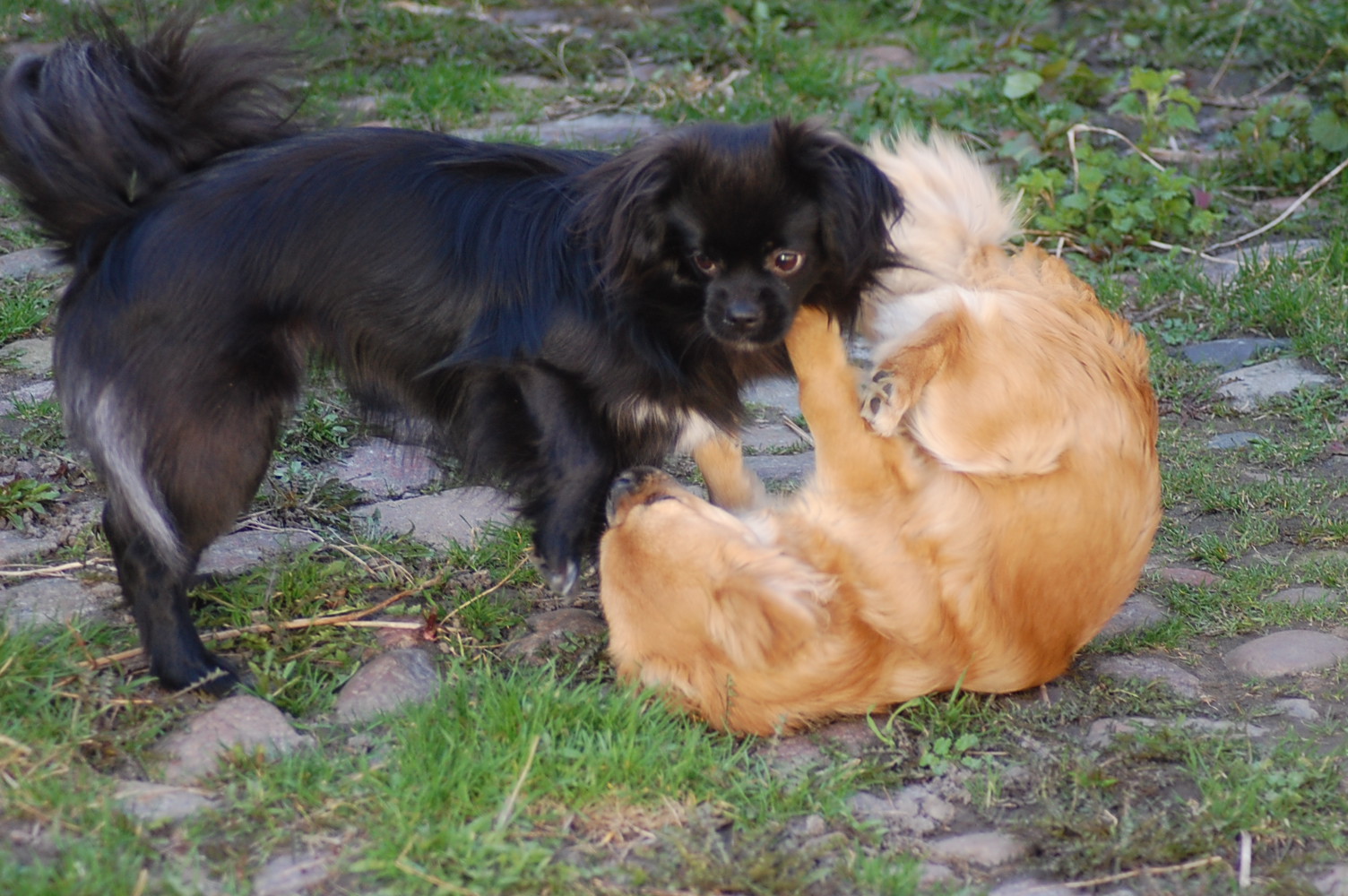 Især tror jeg at det var en stor oplevelse for Ghana at komme på besøg her og få lejlighed til at lege med bedstevennen Ley-La igen. Er der andre tibber end mine der er så forskellige i deres opførsel overfor andre racer, man kan jo slet ikke sammenligne den måde de opfører sig på når de er sammen med andre tibber, og så hvordan det foregår når det er andre hunderacer det drejer sig om.