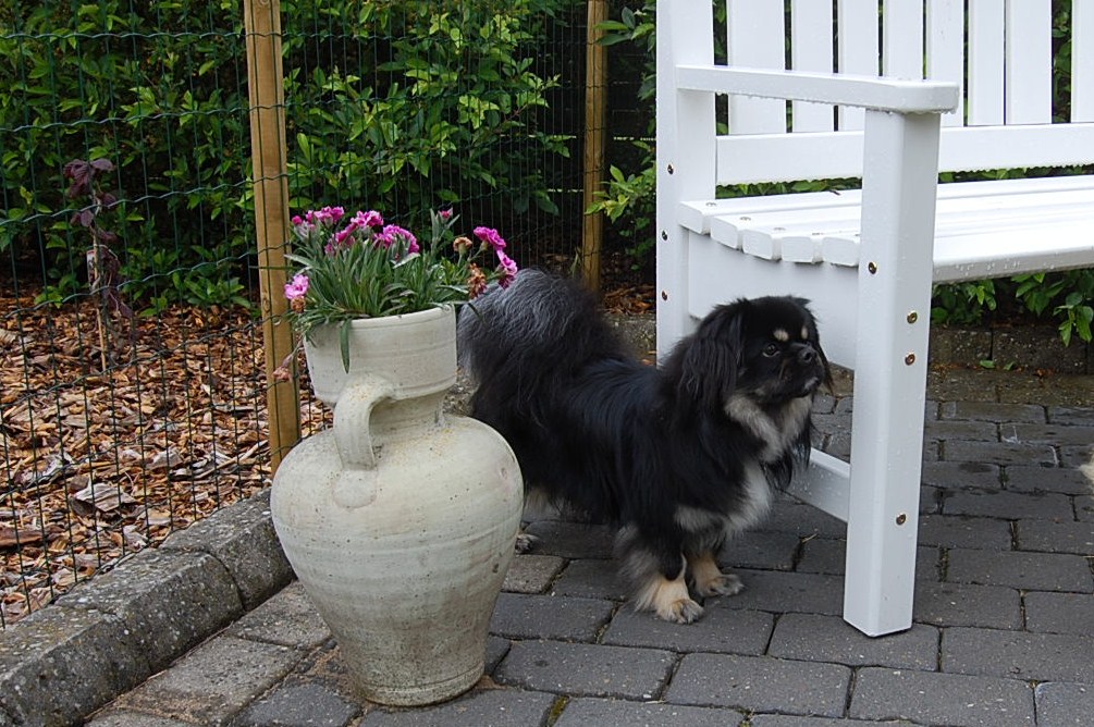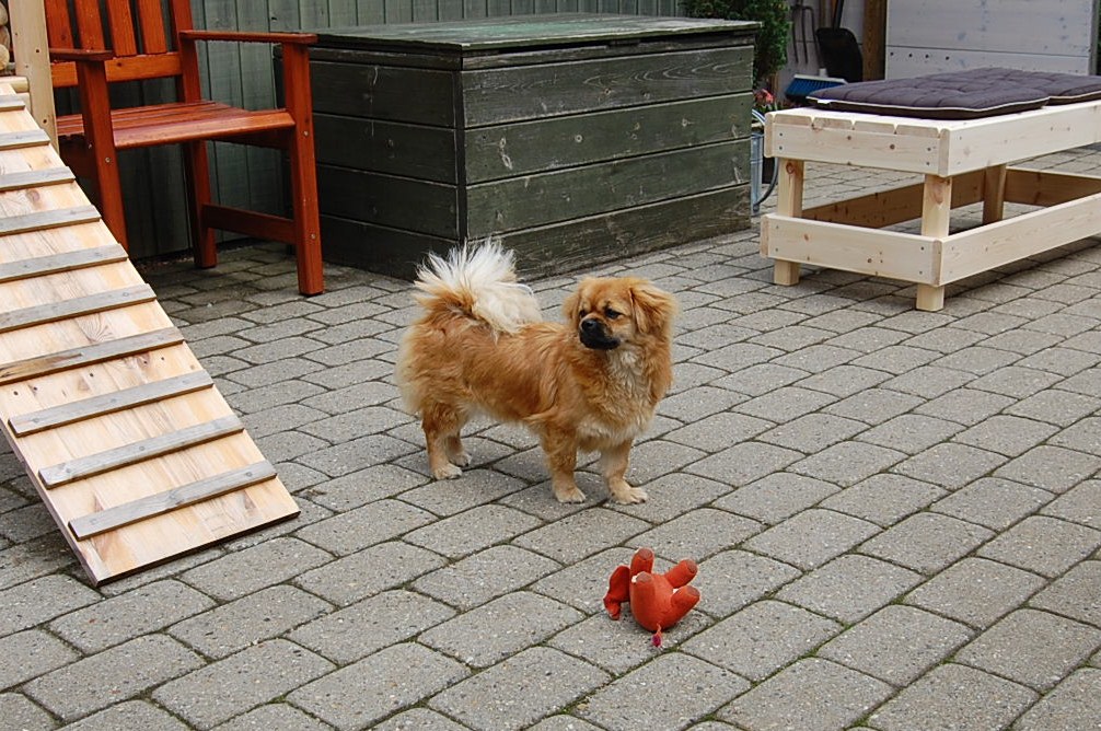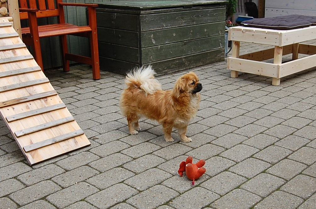 som på stamtavlen hedder Tøselund`s God Given Garion er en af de smukkeste black / tan jeg har set , og det er en ubeskrivelig fornøjelse at besøge ham og se hvordan han har formået at sno sine ejere totalt om sin lille pote. Jeg var på besøg der i går og desværre fik jeg ikke taget et billede der viser hele ” Paladset ” som hans ejer har bygget til ham, men selvom kun noget af det er med på billedet , så giver det alligevel et godt indtryk af nogle ejere der vil gøre alt for deres hund, og som tænker meget over hvordan de kan give ham det bedste liv. Jeg havde taget Ruby med så begge hundene fik nogle nye indtryk og det havde de virkelig fornøjelse af.