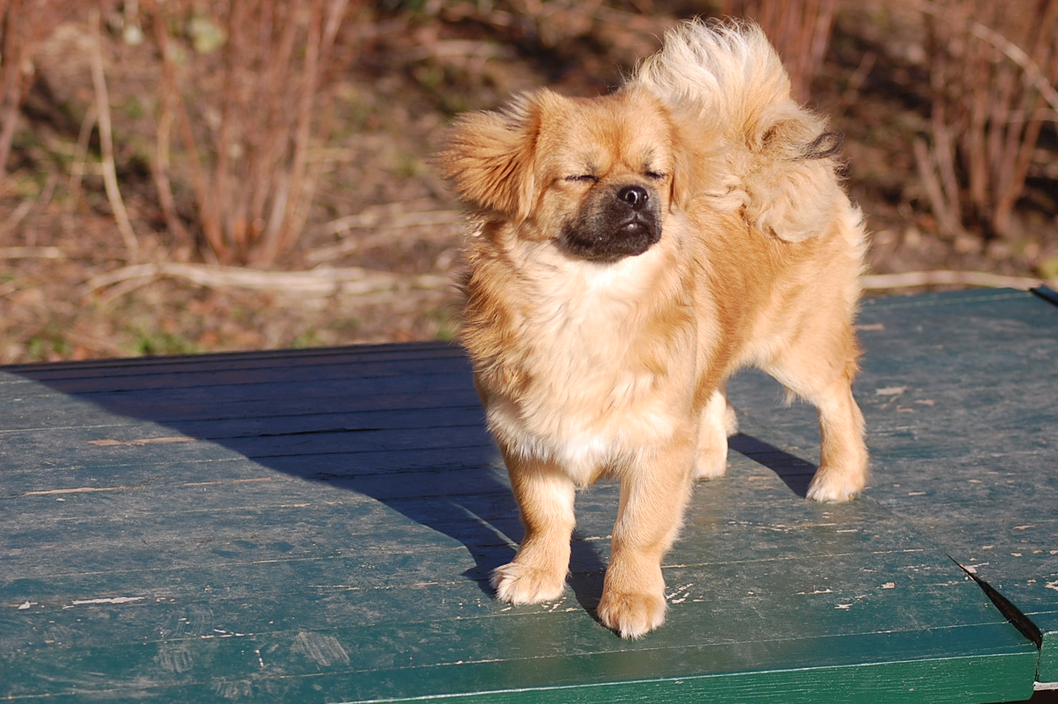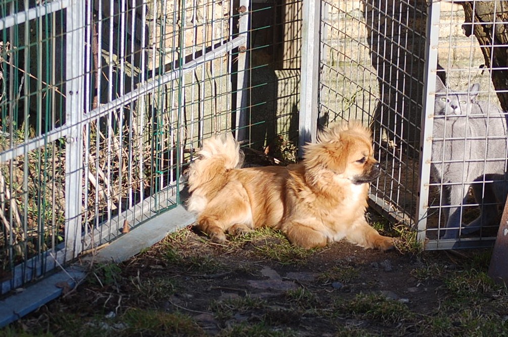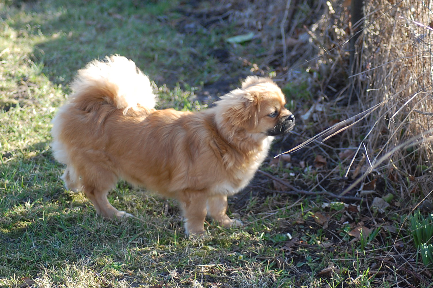 I min have blomstrer der både krokus, vintergækker og erantis og da solen skinnede så dejligt, tog jeg Ruby ud i haven sammen med kameraet. Jeg havde en idè om at jeg ville tage nogle billeder af Ruby sammen med forårsblomsterne. Der er sommetider meget langt fra idèen til det færdige resultat på hjemmesiden, og da mit kamera også løb tør for strøm, var jeg ved helt at opgive projektet. Men når man vil fotografere levende dyr så er det en stor fordel at være temmelig stædig, så efter at have haft batteriet til kameraet til opladning prøvede jeg igen, og dette her er så hvad jeg opnåede af forårsbilleder, plus de 72 jeg bare slettede da jeg havde set nærmere på dem.