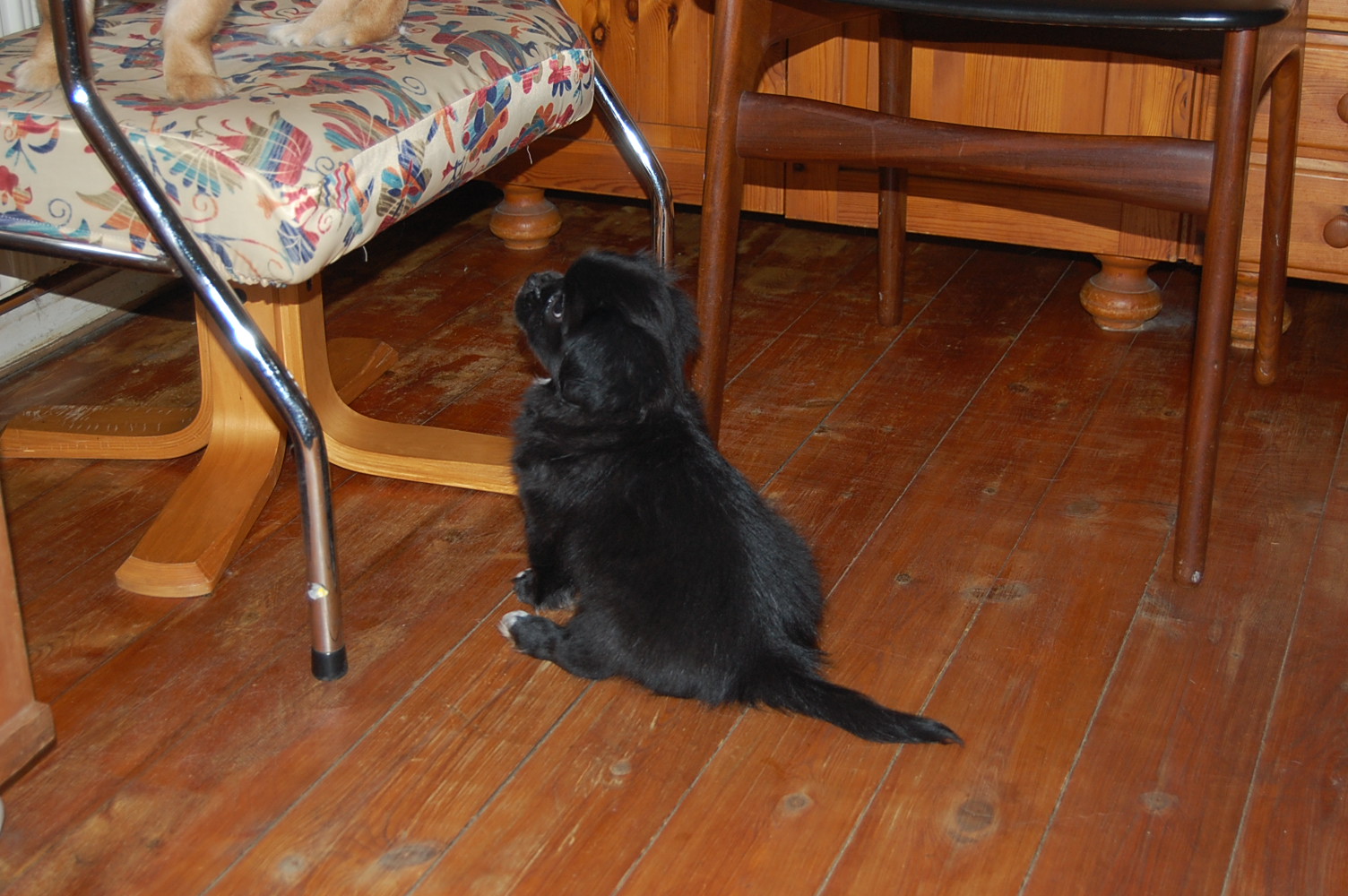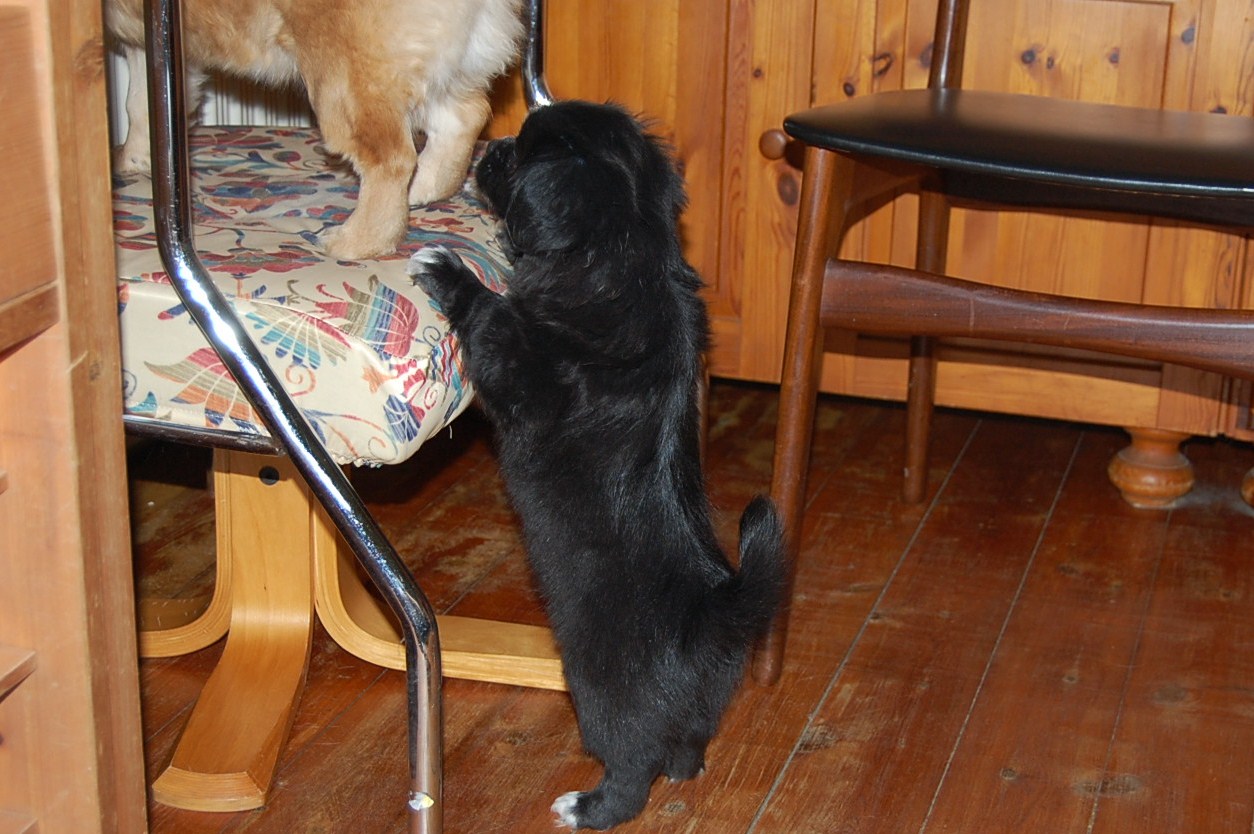 lige nu, men efter hvad han selv vist synes, så er han ikke helt stor nok endnu. Han gør ellers bestemt en indsats for at måle sig med Ruby. Hun er den yngste af ” de store ” og den der oftest gider lege lidt med ham, og det kan godt gå vildt for sig.
