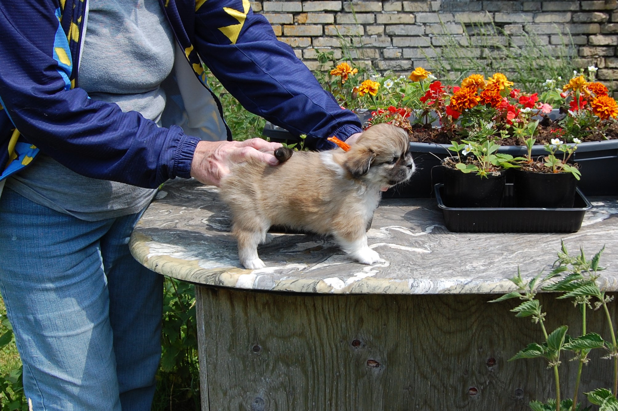 Jeg synes at han er lige så lækker som forældrene er og han er en sød og venlig, livlig hvalp som er glad for at være ude og lege med de andre hvalpe.