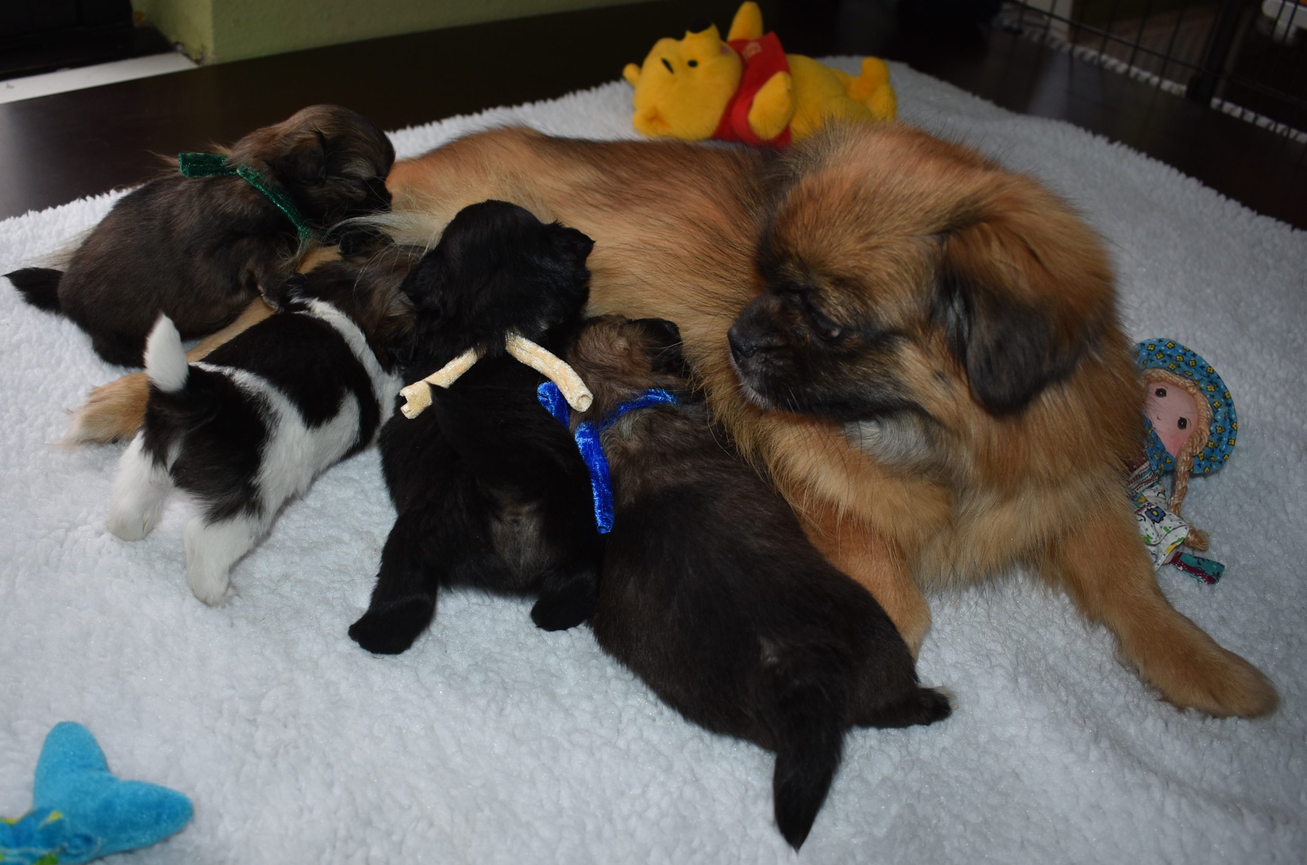 Så fik jeg taget billeder af Tiara med hvalpene og hvor er de dog dejlige alle sammen. Dette kuld har fået navne med en betydning på tibetansk, men hvordan de evt skal udtales ved jeg intet om: