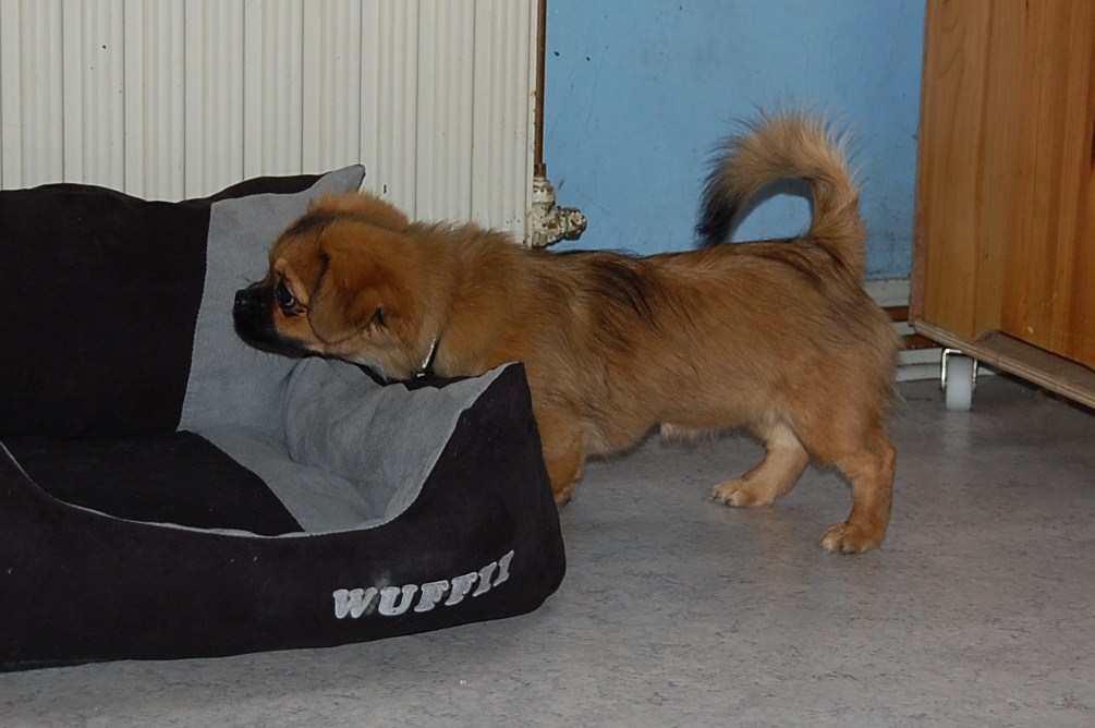har vist ikke truffet mange katte før , for det var ihvertfald noget der havde hendes fulde opmærksomhed da hun i dag kom ud i køkkenet hvor killingerne havde travlt med gemmelege inde i alle kroge. Hun kunne jo ikke komme ind alle de steder hvor der var plads til en lille killing, men hun prøvede ellers ihærdigt at følge med dem.