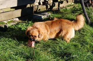 er bare det helt perfekte navn til min lille tibbe, for RØD kan man roligt sige at hun er.Jeg håber på at hun udvikler lidt mere ” ladylike ” manerer som hun vokser til, for endnu har hun alt for meget energi til at navnet passer helt 100 %. Det var en god ide at give hende et råt kødben for det var hun så optaget af at hun var til at få nogle gode billeder af.