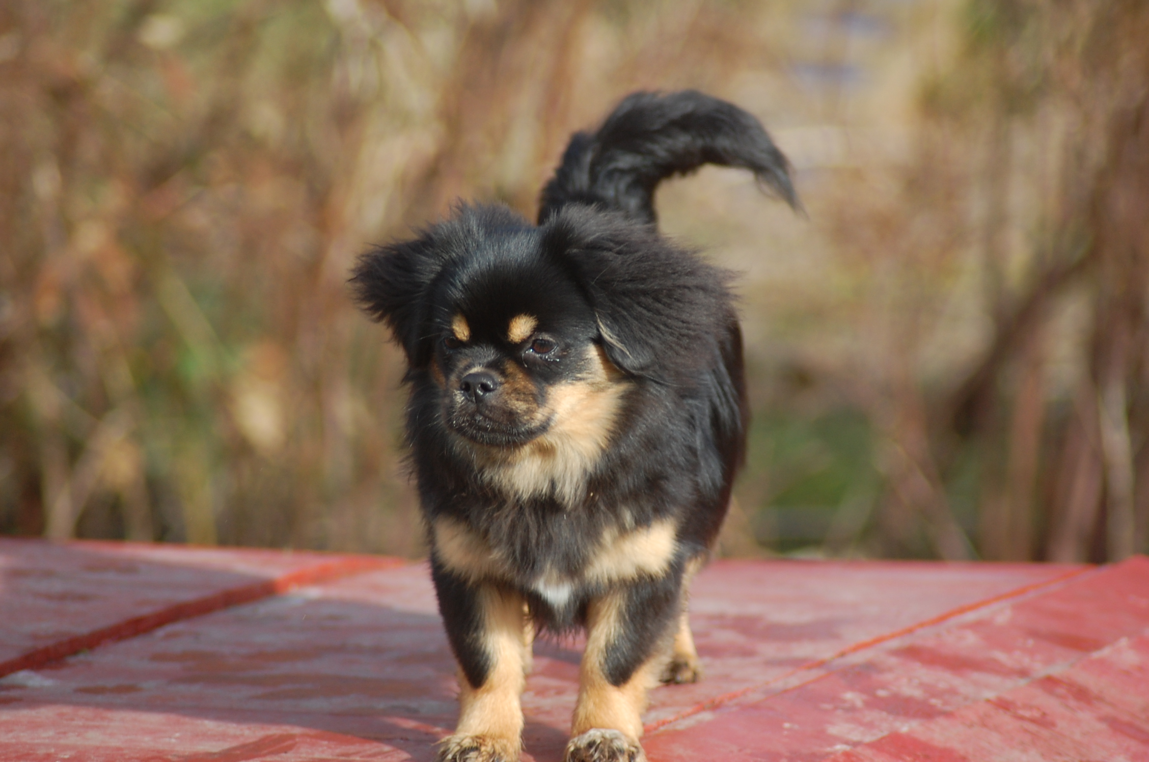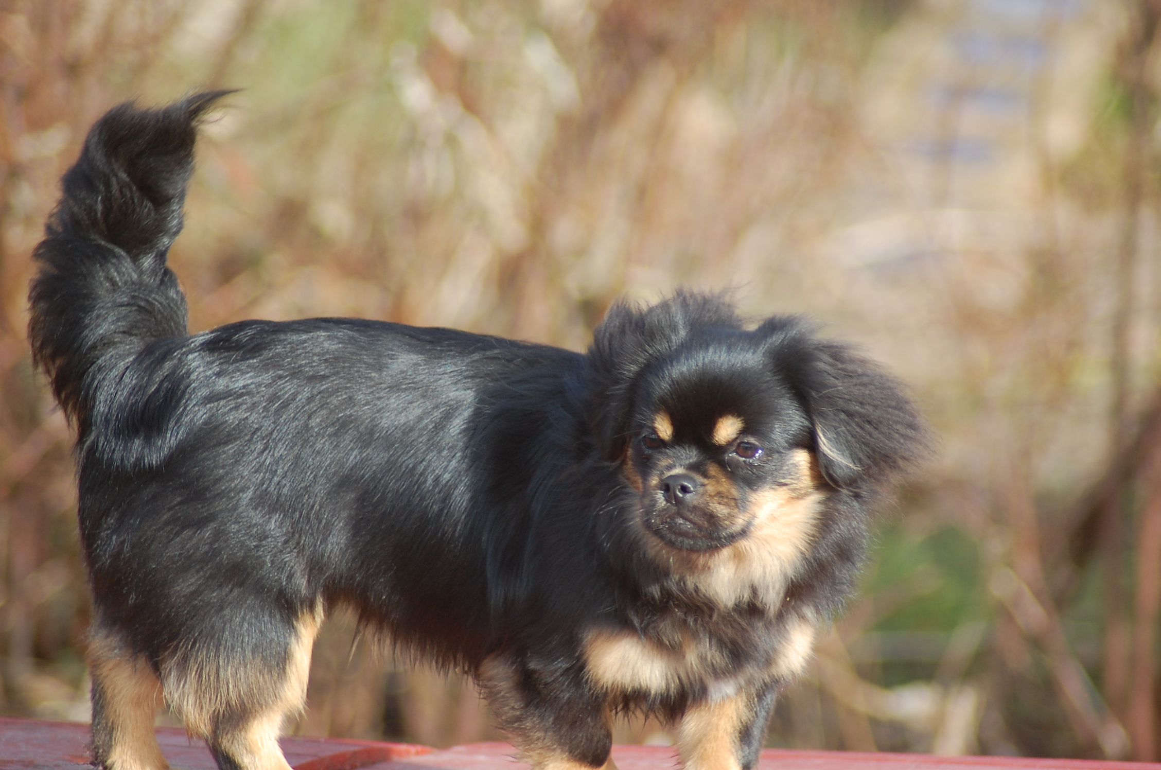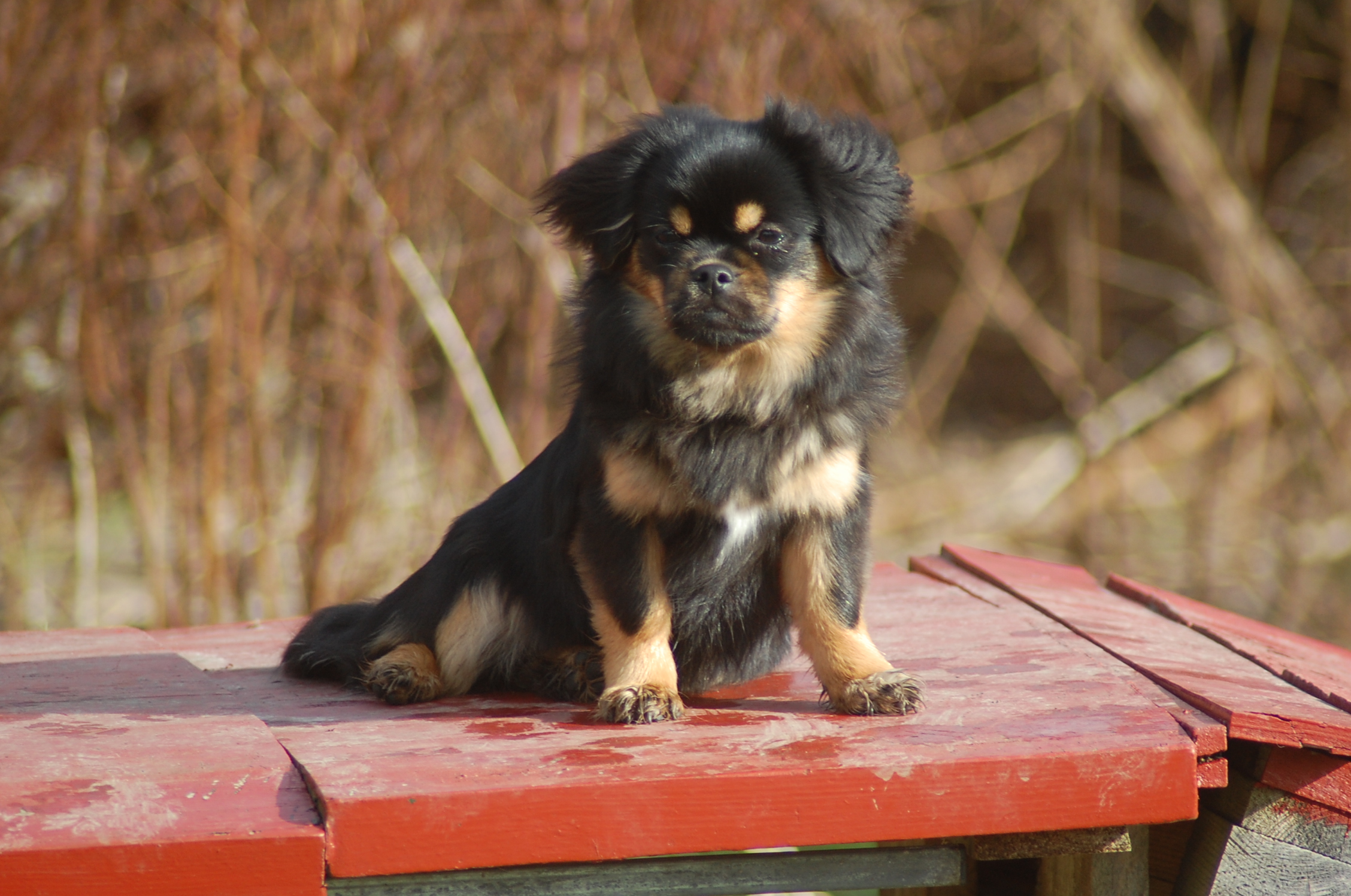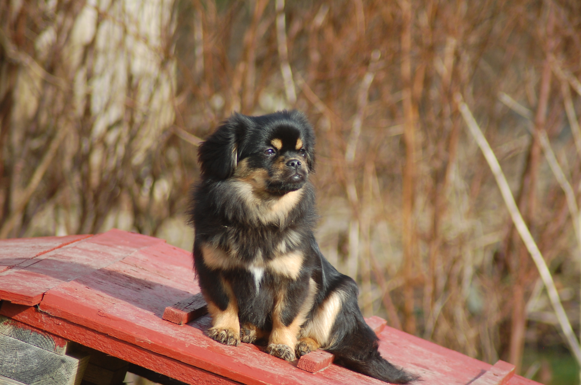 var emnet jeg ønskede at fotografere i dag, men man kan nu ikke sige at hun var meget samarbejdsvillig. Jeg havde en idè om at jeg ville kunne få et rigtigt dejligt billede af hende imellem erantis og vintergækker. Jeg bevæbnede mig med en god håndfuld hundeguf og jeg prøvede længe, at få et rigtigt godt billede. Bonnie nød gufferne, men billedet fik jeg ikke. Lige pludselig var motivet der, og jeg var nær gået glip af det, for det var slet ikke Bonnie der poserede som jeg ønskede det, men derimod Ley-La der nysgerrigt kom forbi for at se hvad det var der var så interessant, og stod næsten som jeg ønskede det.