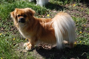 Var den titel der lige faldt mig ind som overskrift til dette indlæg, men egentlig burde jeg nok have kaldt det ” Tre tykke tæver ” for tæverne jeg har fotograferet i dag er da absolut voksne og jeg havde faktisk opgivet at få flere hvalpe efter dem, men tænkte ” Jeg prøver èn gang mere og når det ikke lykkes, så vil jeg ikke ofre flere penge på at få dem gravide “. Sommetider skal man være lidt varsom med at tænke sådan, for jeg troede jo at hvis bare èn af dem blev gravid, så havde jeg været heldig. Både Ruby og Olympia havde gjort ganske klart at de slet ikke ville parres med de hanner jeg havde valgt, og da jeg går ind for naturlig parring hvor hundene selv ønsker at parres, så var der ikke så meget håb om hvalpe fra dem. Med Bonnie var det lidt anderledes for hun ville rigtig gerne parres, men blev bare ikke gravid af det. Da Ruby blev højløbsk så jeg en morgen hvordan hun bakkede bagdelen hen til Santo, der stod bag et gitter, og da kombinationen af de to ville være et rigtigt godt valg, så lukkede jeg op for hende, og der gik kun et par minn. før de hang sammen. Olympia blev klar nogle dage senere og hende tog jeg med ud for at besøge Joe, og han var fra starten af overhovedet ikke interesseret. Det tror jeg faktisk var sundt for Olympia der havde forsvaret sig indædt mod ivrige parringsvillige hanner. Vi kørte derud et par gange mere, men så var jeg forhindret i nogle dage, og så tilbød Ulla som Joe bor hos, at Olympia kunne blive hos dem på ferie. Det var rigtig godt for Olympia for nu kunne hun få lov til at spille op til Joe og det endte da også med at hundene parrede sig , helt uden hjælp fra mennesker og helt uden problemer. Jeg var glædeligt overrasket over at Joe sådan klarede det hele selv og tænkt at måske var han også det rigtige valg til Bonnie. Det viste sig jo at det var han, for han er åbenbart bedre end alverdens test til at finde den rigtige dag at parre tæverne.