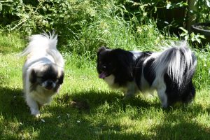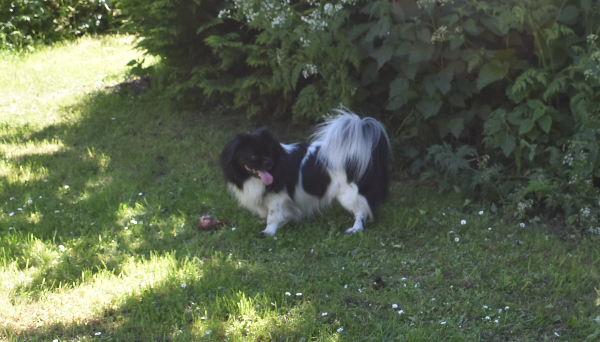 Søndag kom Xanthos på besøg her med sin familie og så inviterede jeg Bente ( som har hans mor Freja ) og Birthe ( som har hans søster Meta ). Menneskene kom men Meta fik lov til at blive hjemme da hun lige har haft hvalpe. Det var en rigtig dejlig eftermiddag i godt selskab og med godt vejr, der kom også lidt gode billeder ud af det. Bl. a. fik jeg taget et billede hvor Xanthos viser at han det smukkeste bid, han er øjenlyst = Intet påvist og med Patella 0/0. Jeg fik da også et rigtig godt èt hvor han står med siden til og det vil jeg vise øverst.