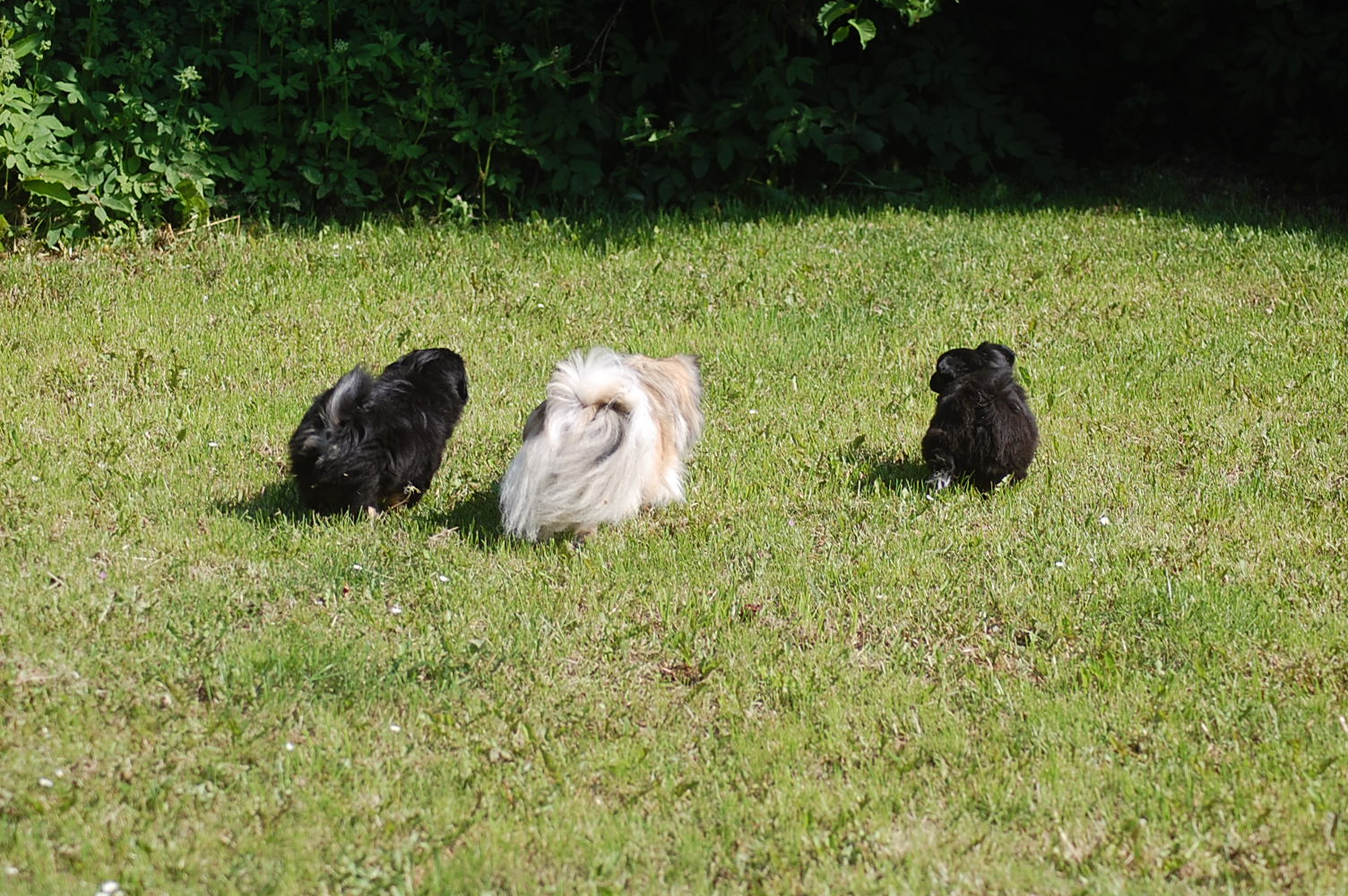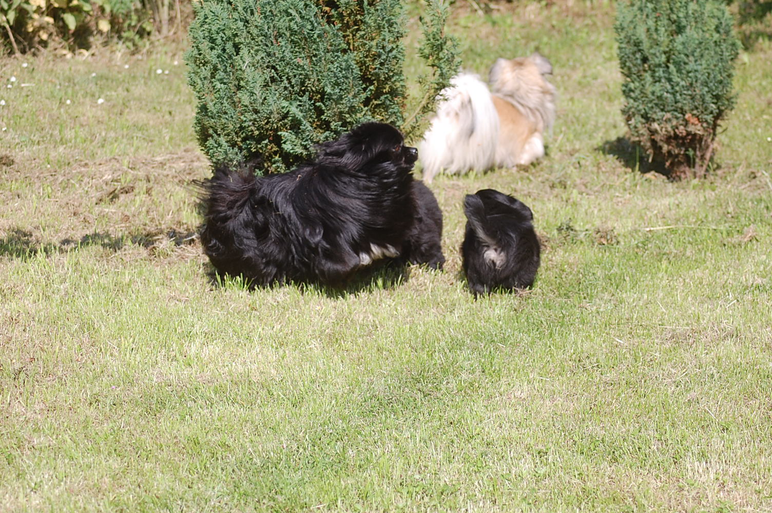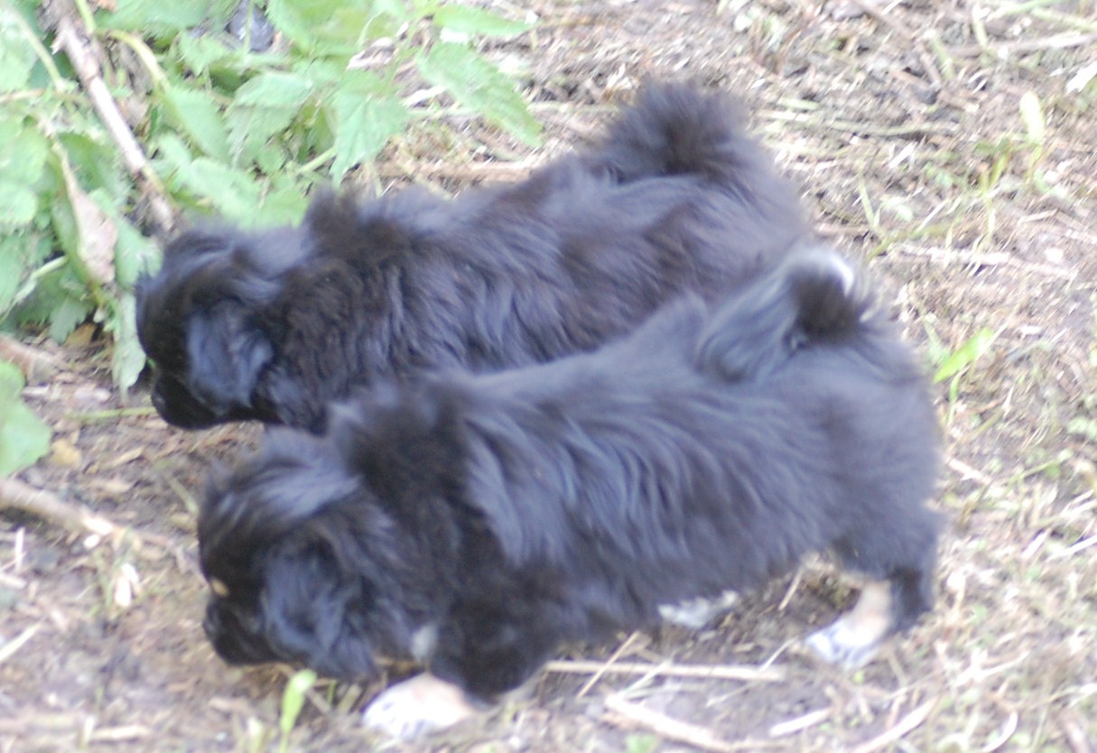 flytter jo i morgen, så jeg tog lige de resterende to hvalpe, + Oliver og Andie, der er forældre til dem, med ud i haven for at forsøge at få nogle gode billeder. Det er bare slet ikke så nemt som det lyder når man fortæller om det, for hver gang hvalpene fik øje på mig kom de styrtende hen imod mig, i en fart så ørerne blæste bagud. Man kan dog godt se at disse hvalpe ligner deres smukke forældre, der begge har en imponerende pels. Begge hunde er også utrolig nemme at holde, for de har slet ikke tendens til at filtre, derfor er pelspleje bare en 5 minn hyggestund èn gang om ugen.