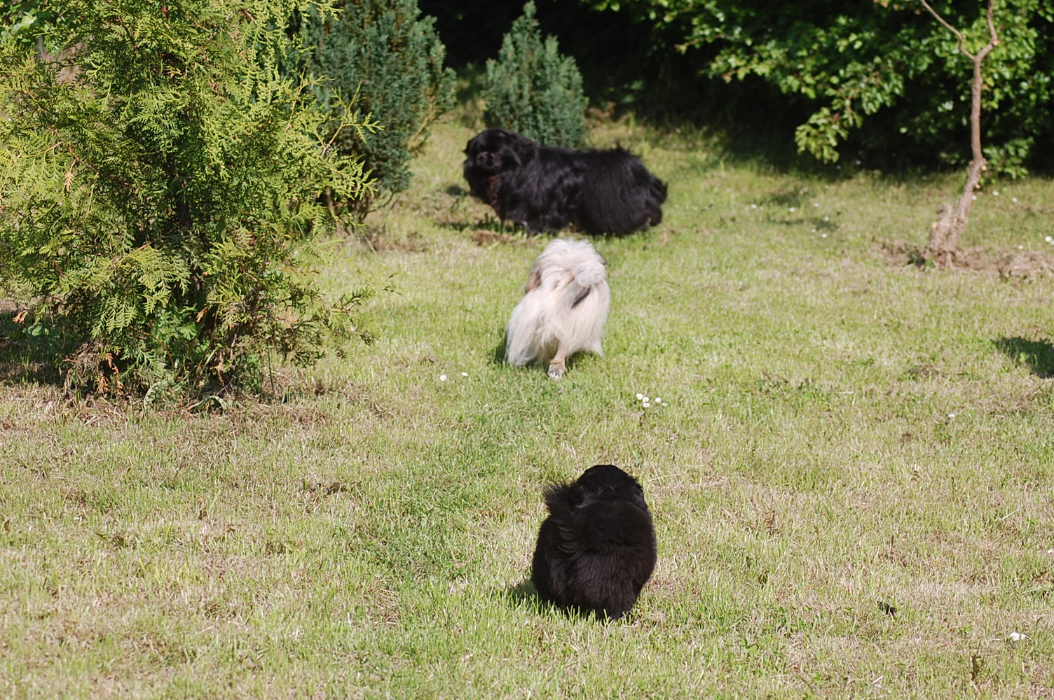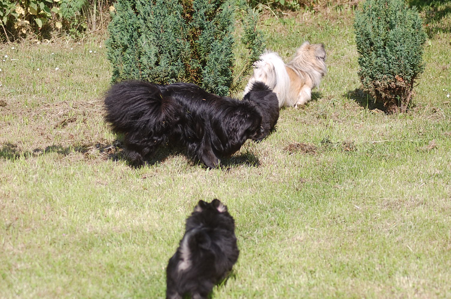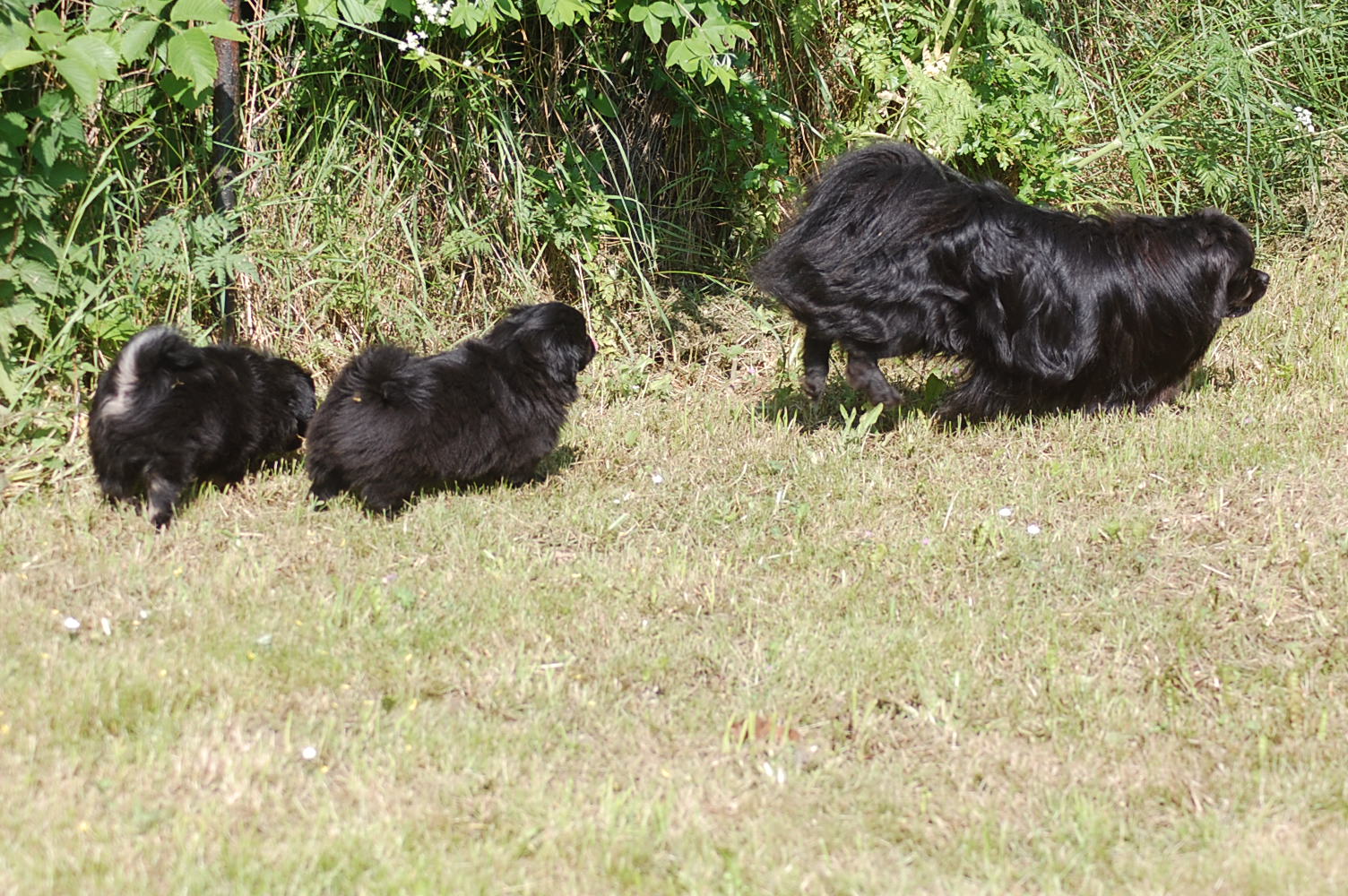 flytter jo i morgen, så jeg tog lige de resterende to hvalpe, + Oliver og Andie, der er forældre til dem, med ud i haven for at forsøge at få nogle gode billeder. Det er bare slet ikke så nemt som det lyder når man fortæller om det, for hver gang hvalpene fik øje på mig kom de styrtende hen imod mig, i en fart så ørerne blæste bagud. Man kan dog godt se at disse hvalpe ligner deres smukke forældre, der begge har en imponerende pels. Begge hunde er også utrolig nemme at holde, for de har slet ikke tendens til at filtre, derfor er pelspleje bare en 5 minn hyggestund èn gang om ugen.