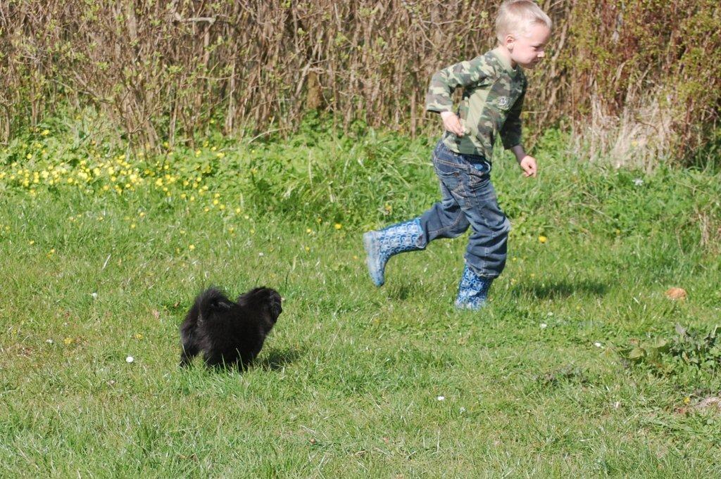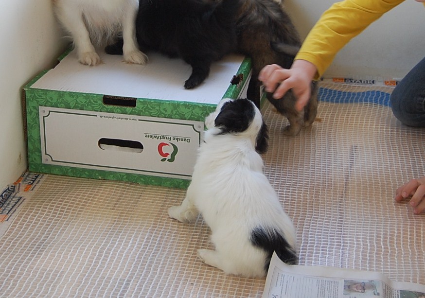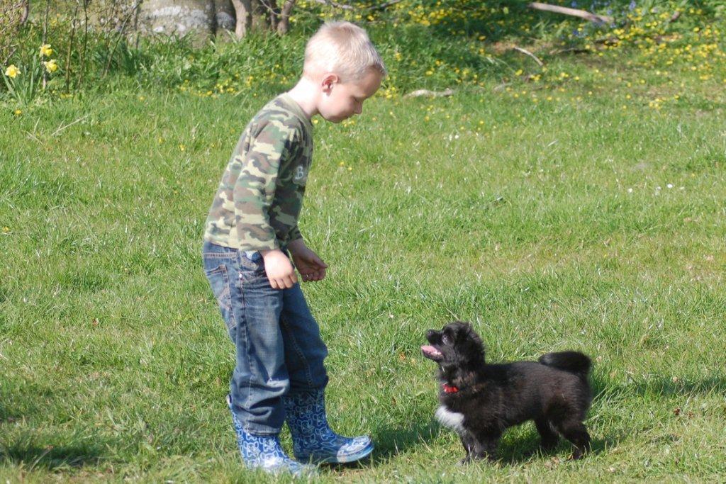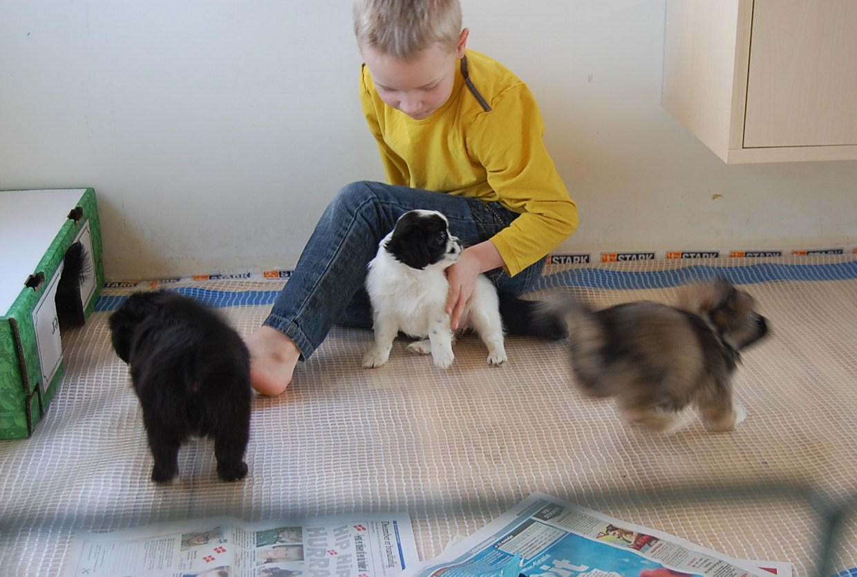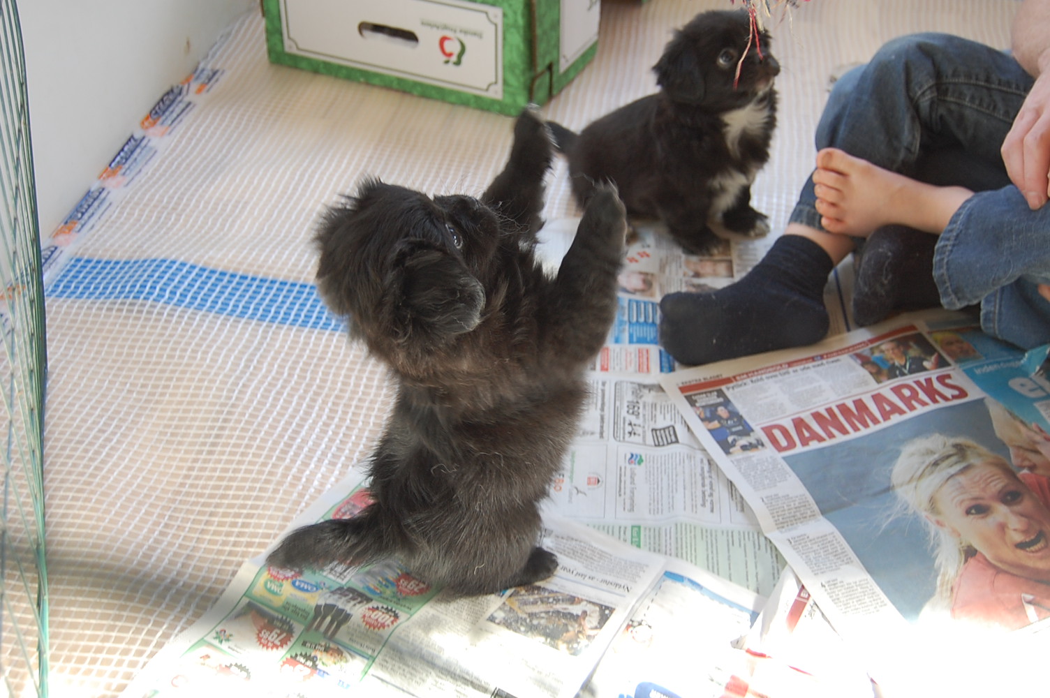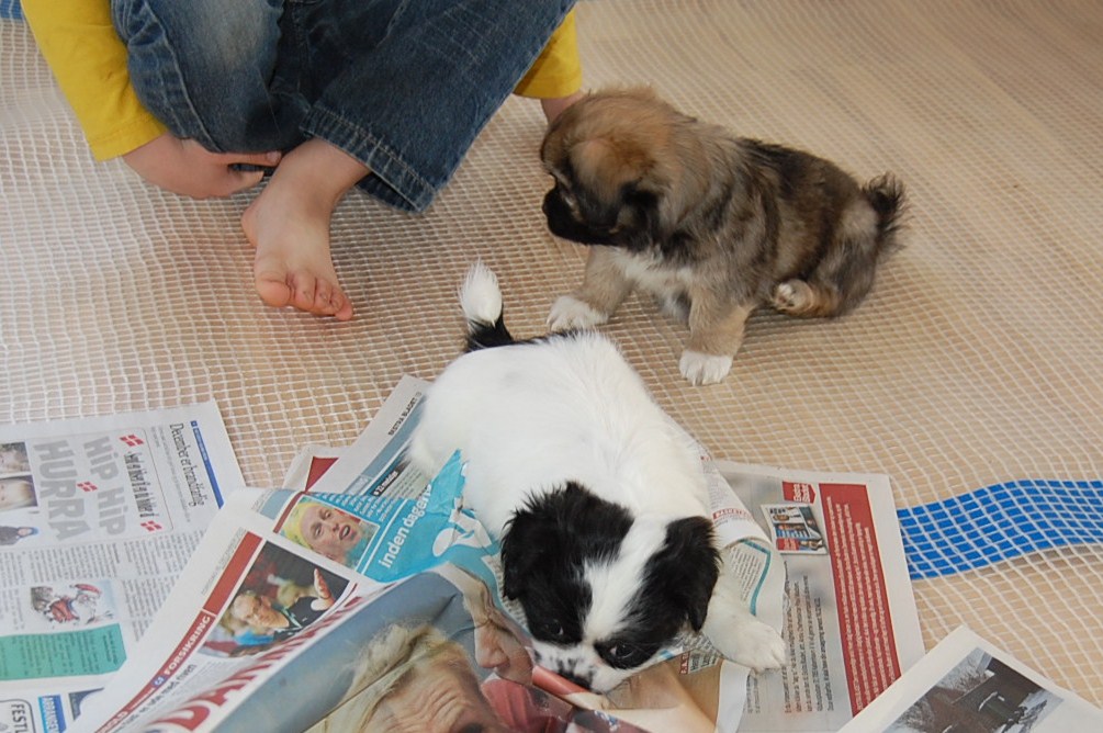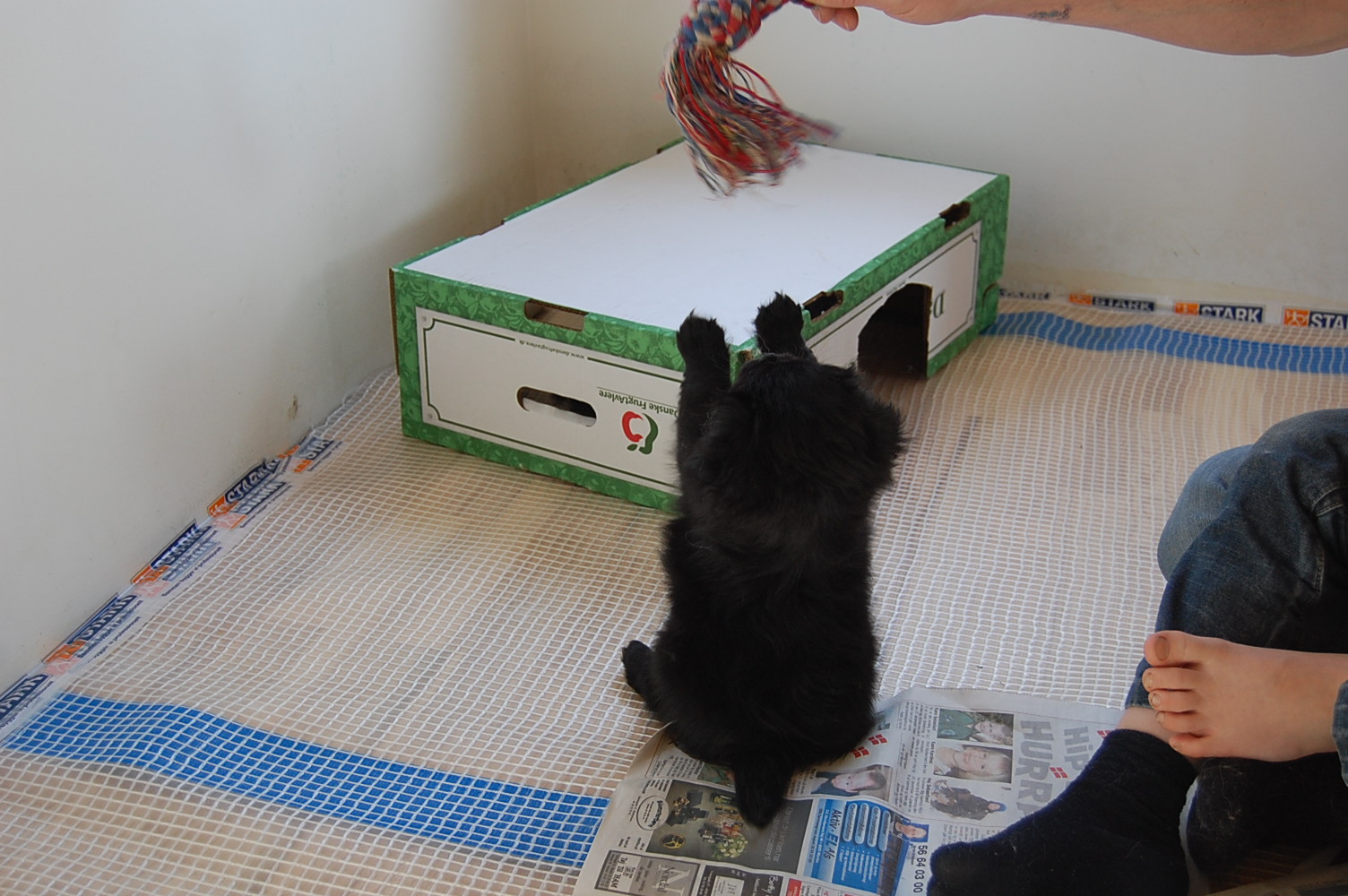 kommer jo næsten af sig selv når man er en lille hvalp der elsker menneskers selskab. I dette kuld er der stor forskel på hvad hvalpene helst beskæftiger sig med, men det er et hit når de får en ny ting at der kan undersøges, kravles op på og smages på.