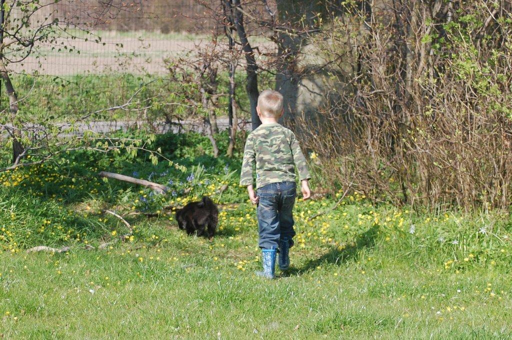 Lasse tabte vist et par brødkrummer hèr i græsset. Ghana : Har du mere ? Lasse : Jeg løber bare fra dem. Ghana er ikke så nem at løbe fra. Hvad skal vi så finde på ? Vi kigger lige efter om der sker noget spændende i skoven !