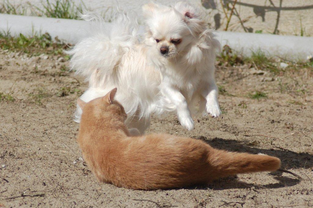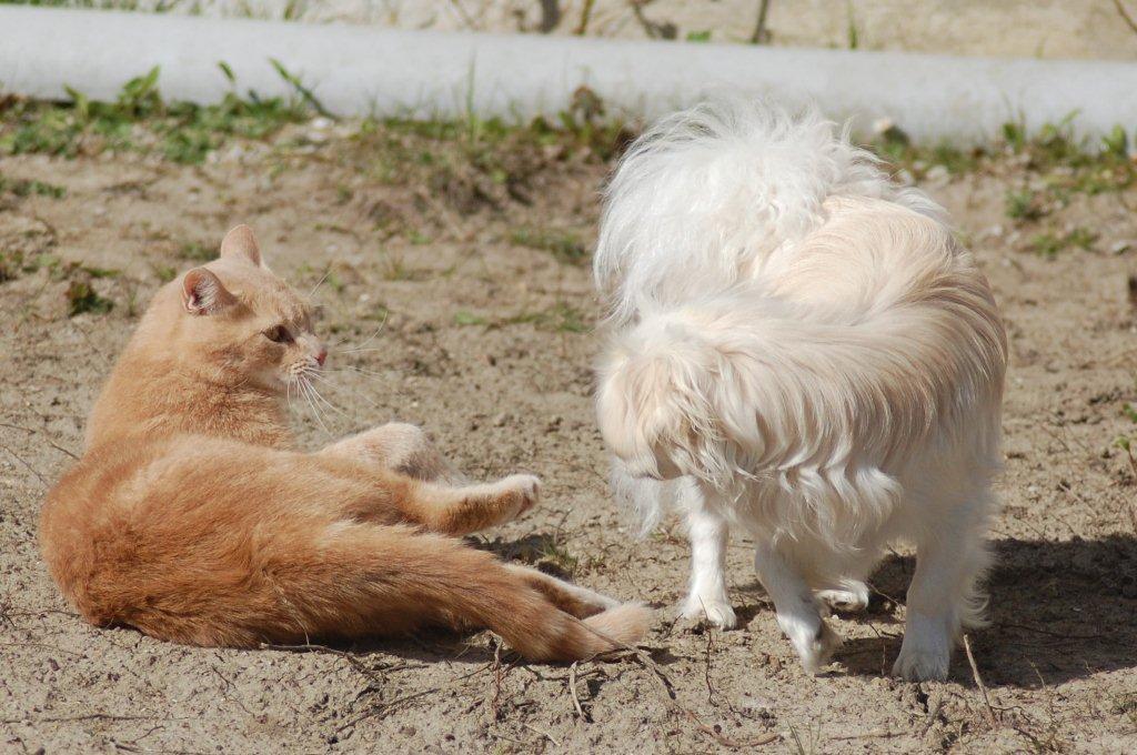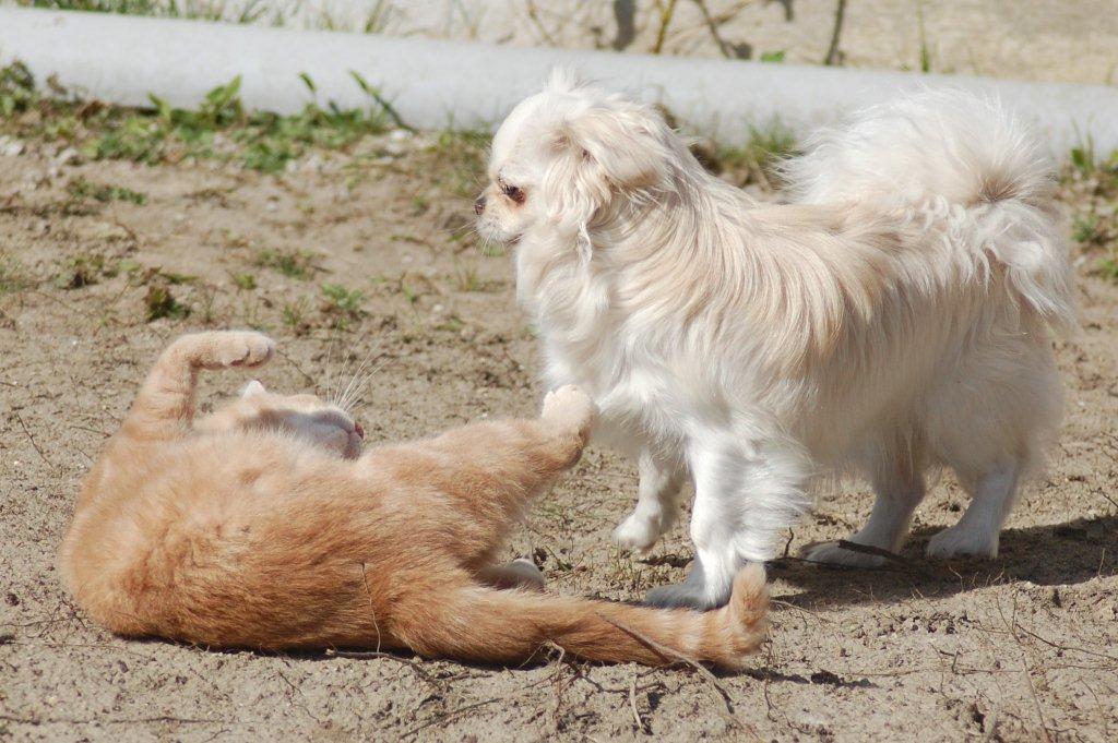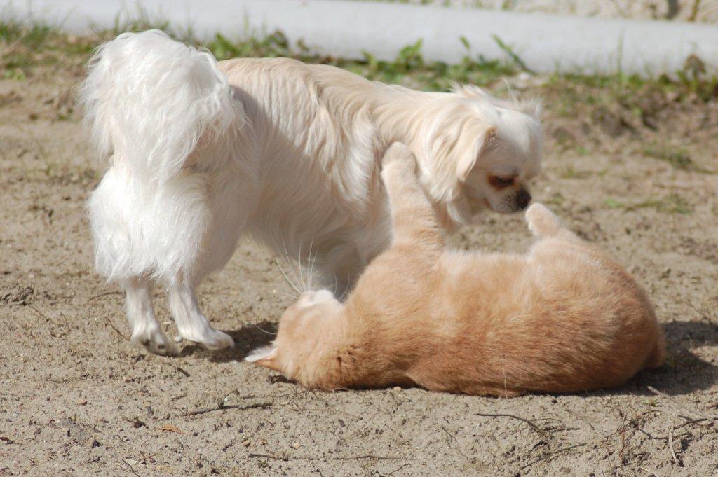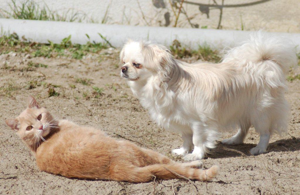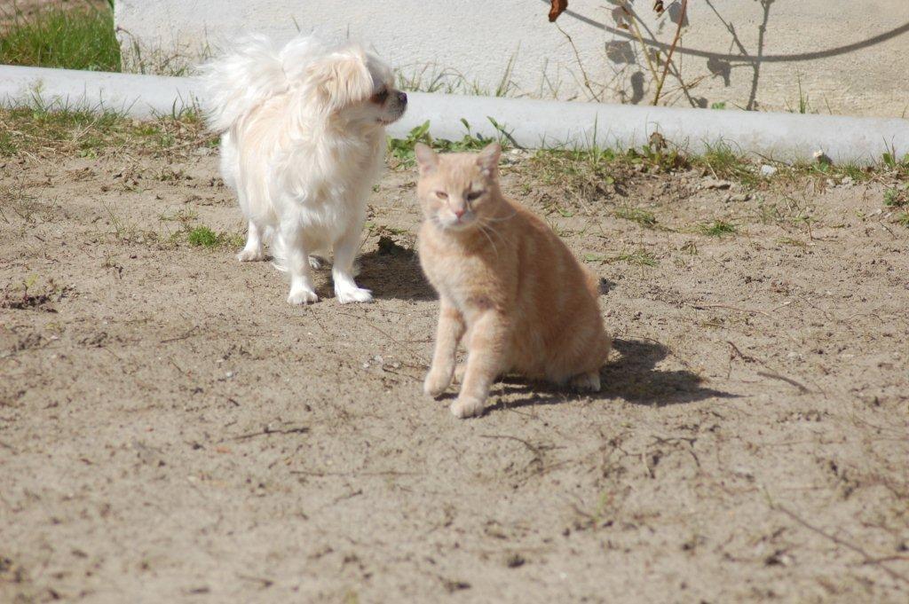 Når vejret endeligt viser sig fra sin pæne side, så er det jo bare med at være ude og nyde det. Her hos mig betyder det ofte, at de fleste af mine dyr er med ude på gårdspladsen, og det gælder både katte og hunde, der virkeligt nyder det, og de nyder også samværet med hinanden.