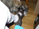 Nu er de begyndt at gå lidt rundt i hvalpesengen, på vaklende ben, og tumle lidt rundt med hinanden. Jeg tog dem op på trimmebordet i en kattepude så der var lidt samling på deres udfoldelser. Det er ikke så nemt at fotografere små hvalpe når man er alene om det. Du kan læse resten af, Hvalpene vokser her.!
